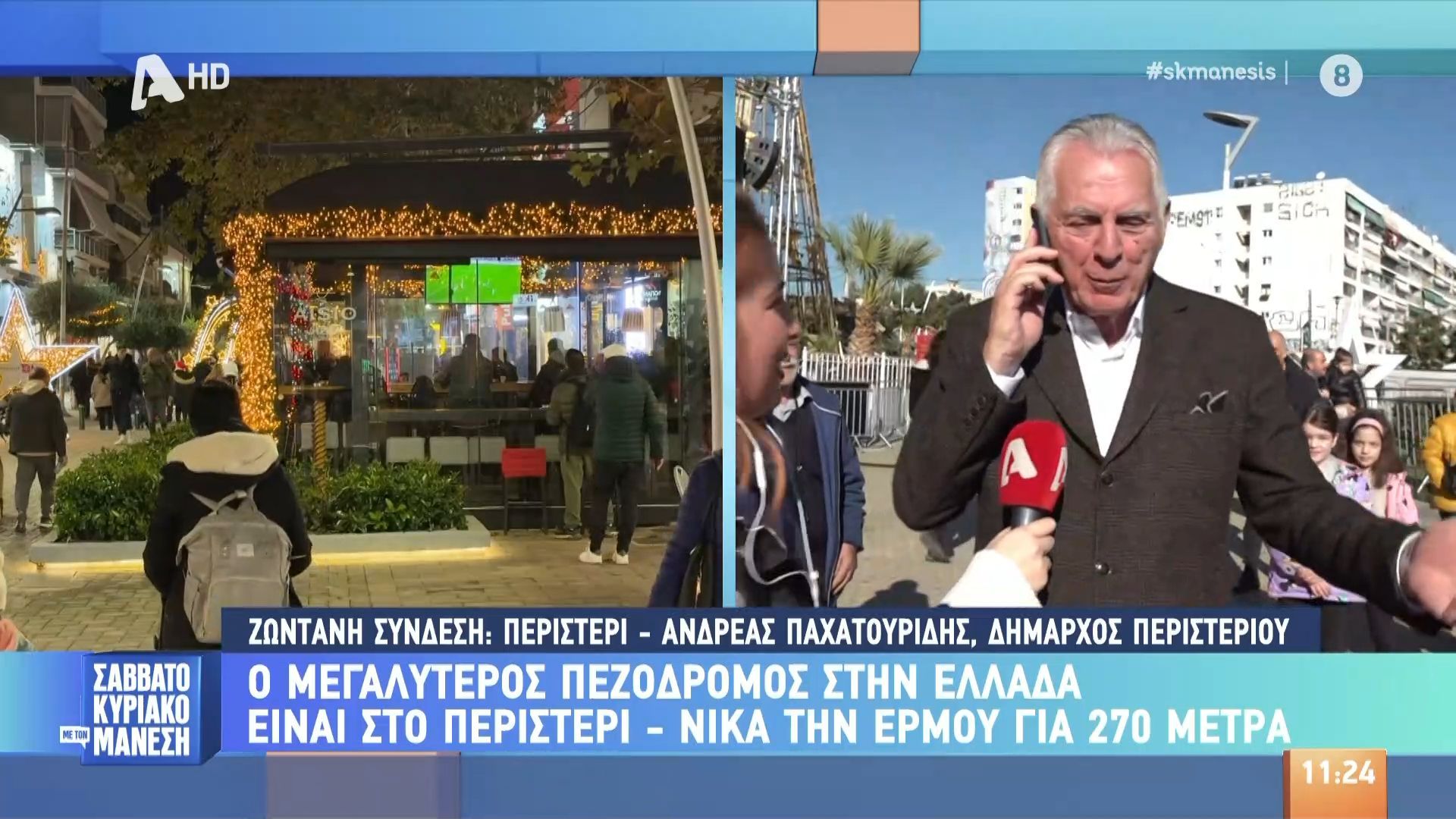 Στον μεγαλύτερο πεζόδρομο της Ελλάδας, που βρίσκεται στο Περιστέρι, μια μουσική μπάντα προσέφερε μια ζωντανή και εντυπωσιακή παράσταση, προσελκύοντας πλήθος κόσμου. Ο πεζόδρομος, που ξεπερνά σε μήκος την Ερμού κατά 270 μέτρα, έχει γίνει σημείο αναφοράς για τους κατοίκους και επισκέπτες της περιοχής.