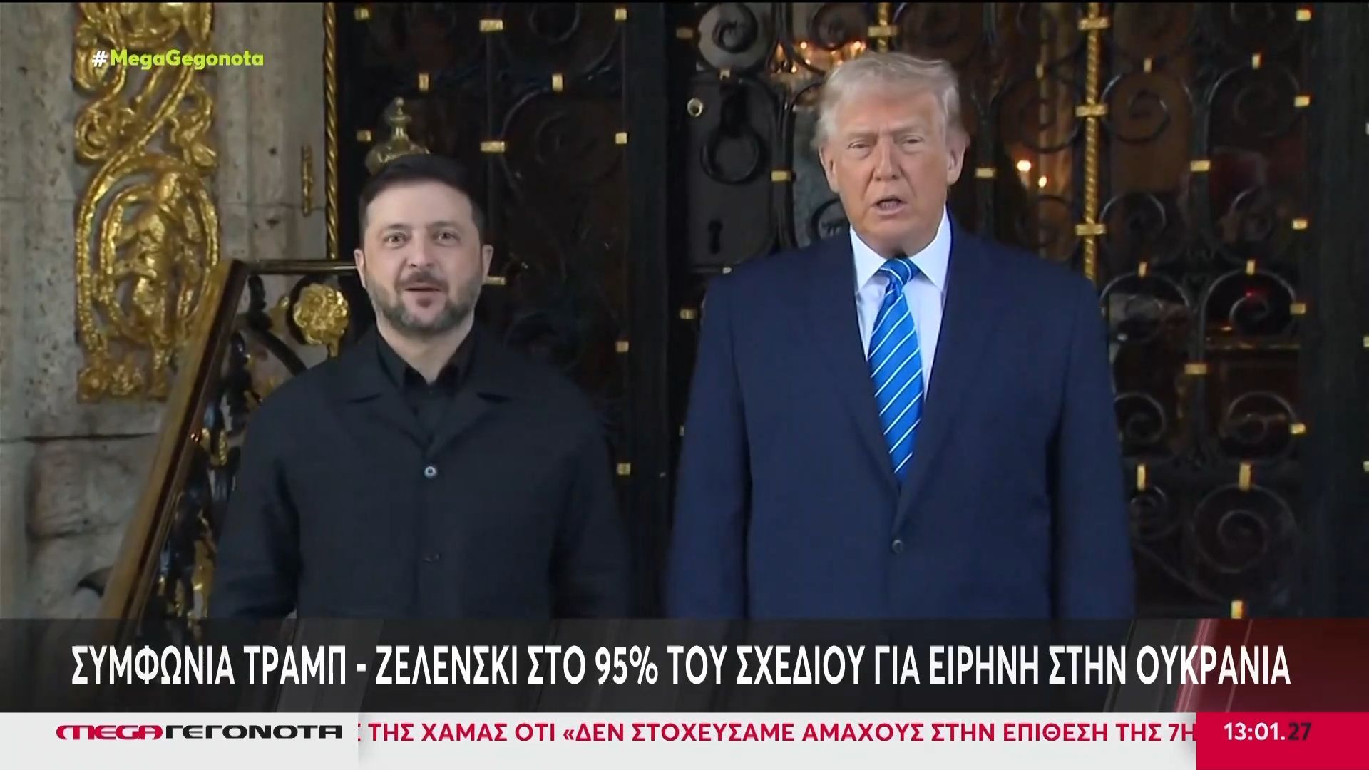 Ο Βολοντίμιρ Ζελένσκι παρουσίασε την εκδοχή του για το ειρηνευτικό σχέδιο 20 σημείων στην Ουκρανία στον Ντόναλντ Τραμπ, με τις συνομιλίες να διαρκούν δύο ώρες. Οι δύο ηγέτες ανέφεραν ότι σημειώθηκε σημαντική πρόοδος και συμφώνησαν στο 95% του σχεδίου.