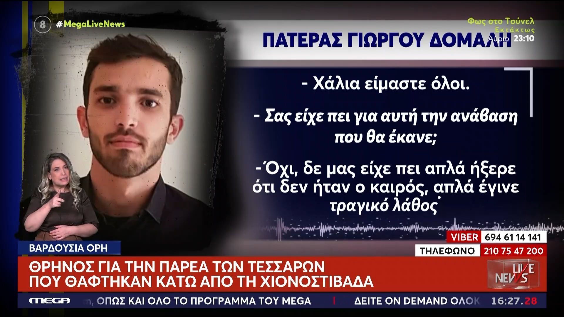 Μια ανείπωτη τραγωδία εκτυλίχθηκε στα Βαρδούσια Όρη, όταν ένας πατέρας και ο γιος του βρήκαν τραγικό θάνατο σε ορειβατική εξόρμηση. Οι δύο άνδρες, μαζί με άλλους δύο φίλους τους, βρέθηκαν σε δύσκολες συνθήκες και δεν κατάφεραν να επιστρέψουν, προκαλώντας σοκ στην τοπική κοινωνία.