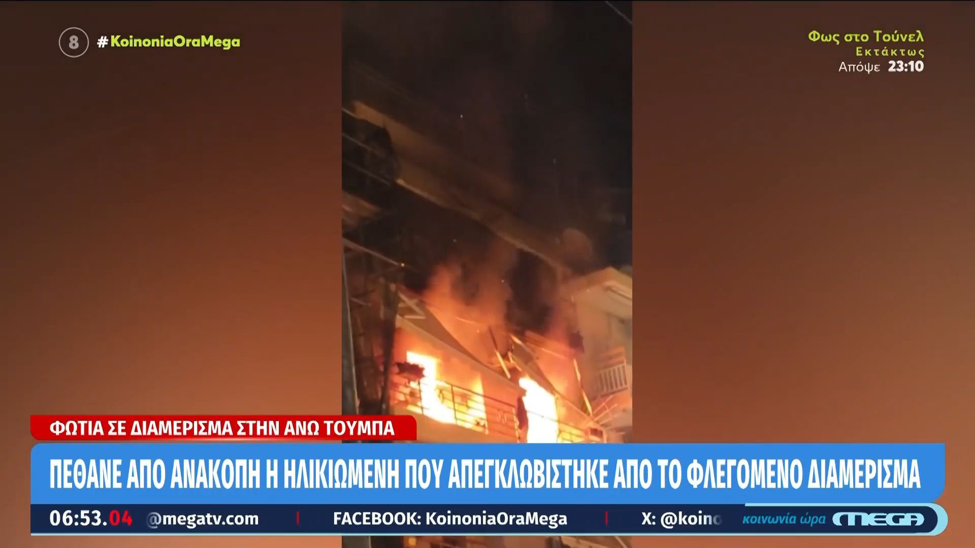 Η ηλικιωμένη γυναίκα που απεγκλωβίστηκε από φλεγόμενο διαμέρισμα στην Κάτω Τούμπα, δεν κατάφερε να επιβιώσει. Η φωτιά ξέσπασε το βράδυ της Κυριακής, εγκλωβίζοντας ένα ζευγάρι ηλικιωμένων στον δεύτερο όροφο πολυκατοικίας.