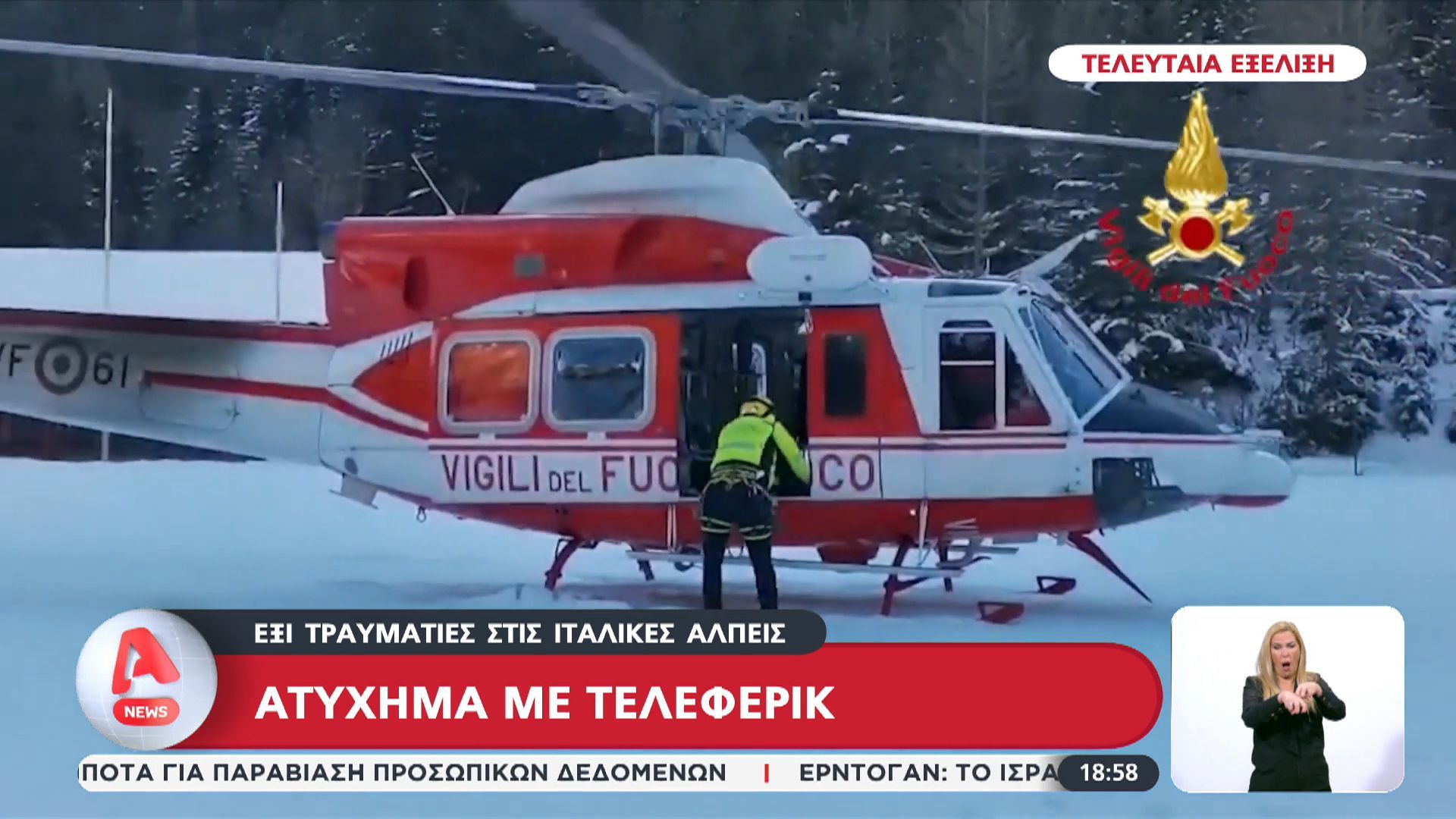 Ατύχημα σημειώθηκε σε τελεφερίκ στις ιταλικές Άλπεις, με αποτέλεσμα τον τραυματισμό έξι ατόμων. Οι τραυματίες μεταφέρθηκαν άμεσα στο νοσοκομείο, ενώ οι αρχές διεξάγουν έρευνα για τις συνθήκες του συμβάντος.