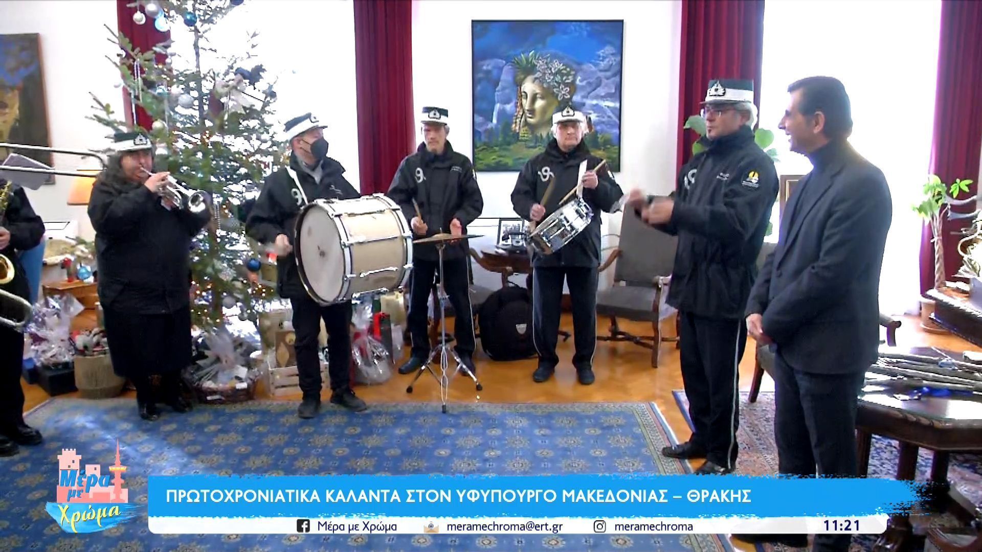 Από νωρίς το πρωί της Παραμονής Πρωτοχρονιάς, το Διοικητήριο της Μακεδονίας-Θράκης άνοιξε τις πόρτες του για τον εορτασμό των παραδοσιακών καλάντων. Ο υφυπουργός υποδέχτηκε με χαρά μπάντες και μικρούς μαθητές, οι οποίοι του τραγούδησαν τα πρωτοχρονιάτικα κάλαντα, προσφέροντας μια ευχάριστη ατμόσφαιρα.