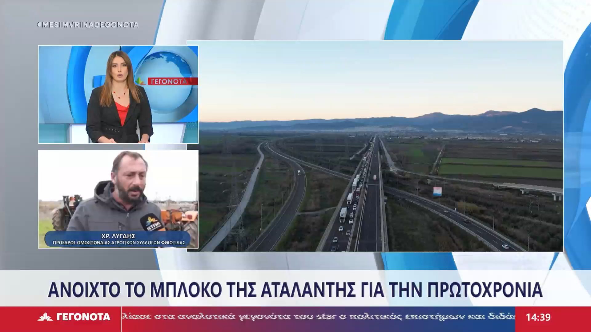 Αγρότες από την περιοχή της Αταλάντης προετοιμάζονται να κλιμακώσουν τις κινητοποιήσεις τους μετά τις γιορτές, αν και η κυκλοφορία στην εθνική οδό Αθηνών-Λαμίας διεξάγεται ομαλά. Ο πρόεδρος της Ομοσπονδίας Αγροτικών Συλλόγων Φθιώτιδας, Χρήστος Λιγδής, αναμένει σημαντικές αποφάσεις από την πανελλαδική σύσκεψη που θα γίνει στα Μάλγαρα την Κυριακή.
