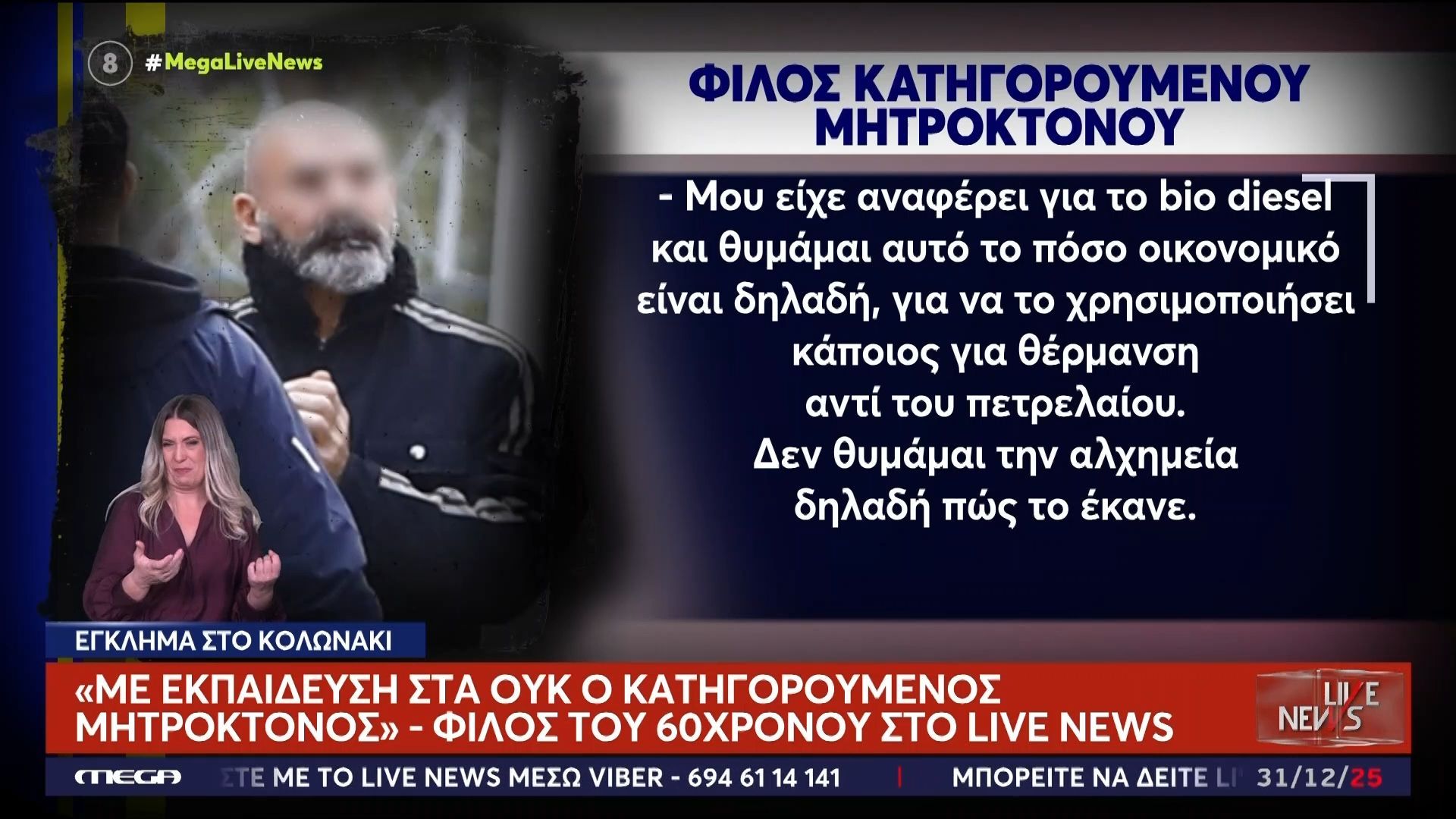 Φίλος του 60χρονου κατηγορούμενου για τη μητροκτονία εμφανίστηκε ζωντανά...