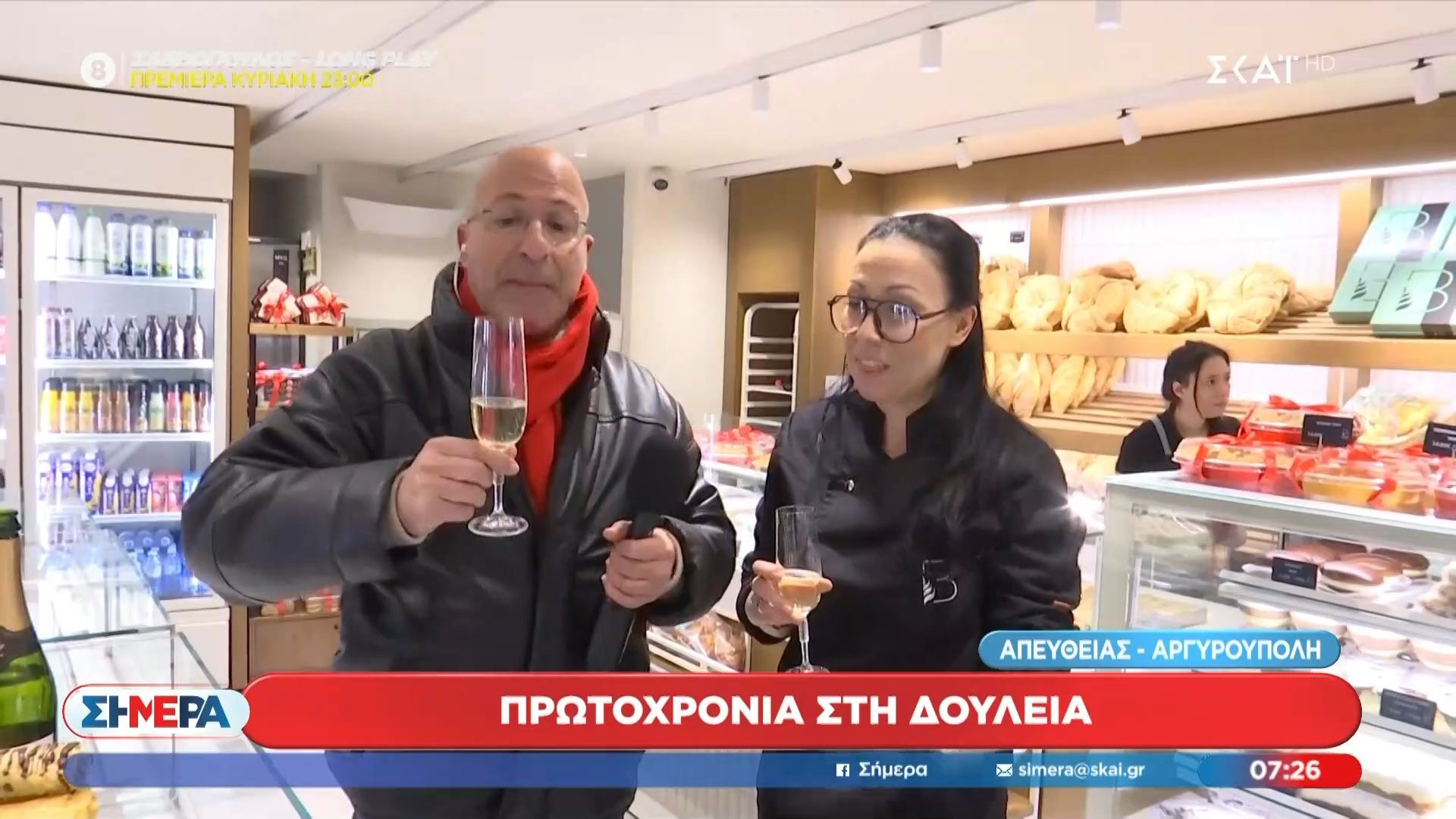 Στον εργασιακό χώρο, οι υπάλληλοι γιορτάζουν την έλευση της νέας χρονιάς με εορταστική διάθεση. Παρά τις επαγγελματικές υποχρεώσεις, οι εργαζόμενοι έχουν την ευκαιρία να απολαύσουν στιγμές χαλάρωσης, συνοδευόμενες από σαμπάνια και εορταστικά εδέσματα.