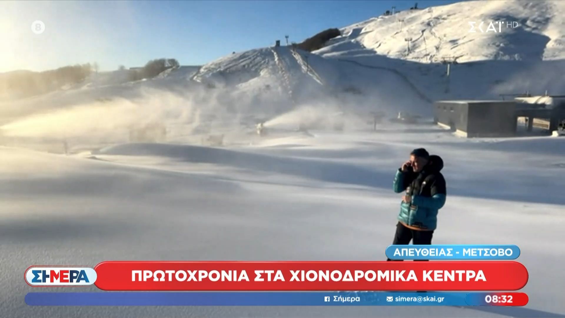 Οι επισκέπτες στα χιονοδρομικά κέντρα της χώρας γιορτάζουν την Πρωτοχρονιά σε ένα κλίμα γιορτής, παρά την έλλειψη χιονιού. Οι πίστες, αν και λιγότερο γεμάτες από το αναμενόμενο, προσελκύουν πλήθος σκιέρ και οικογενειών που επιθυμούν να περάσουν τις γιορτές σε ορεινές περιοχές.