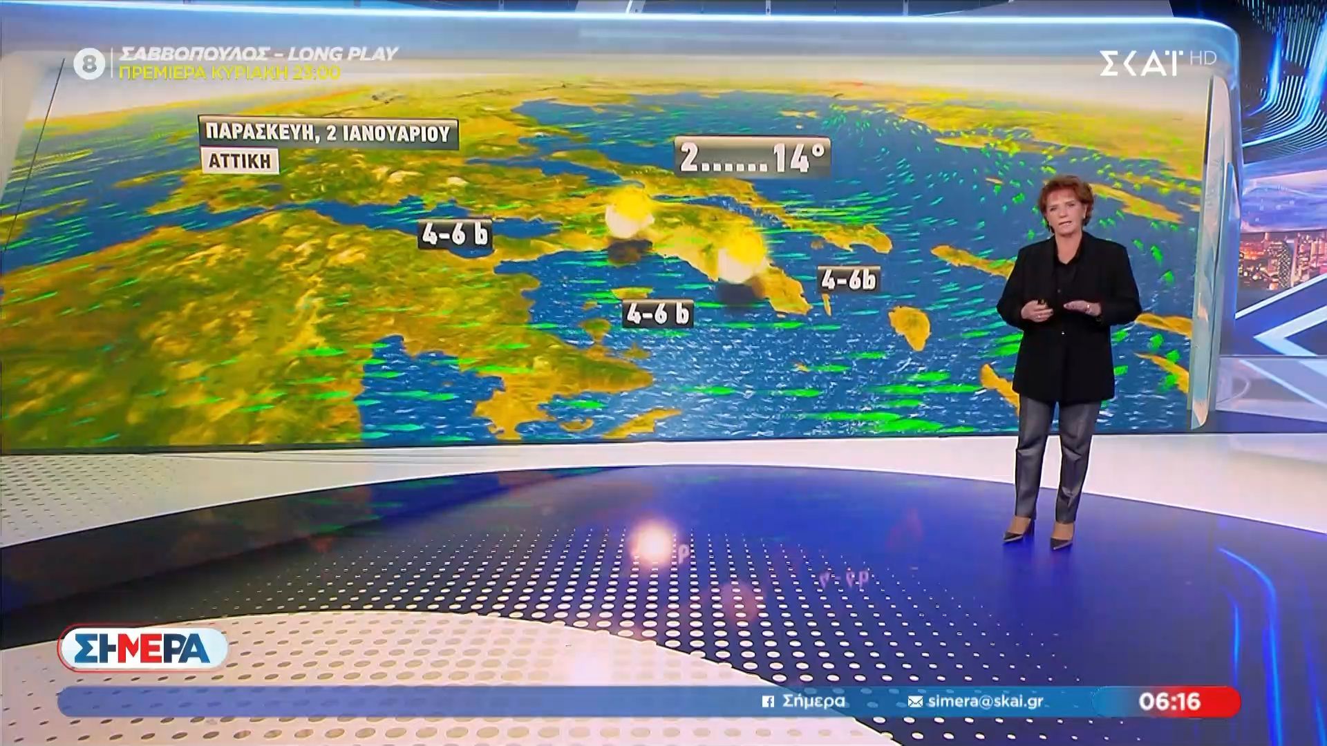 Η Χριστίνα Σούζη αναλύει τις καιρικές συνθήκες που θα επικρατήσουν την Παρασκευή, 2 Ιανουαρίου 2026. Οι θερμοκρασίες αναμένονται να κυμανθούν σε χαμηλά επίπεδα, με πιθανές βροχοπτώσεις σε αρκετές περιοχές της χώρας.