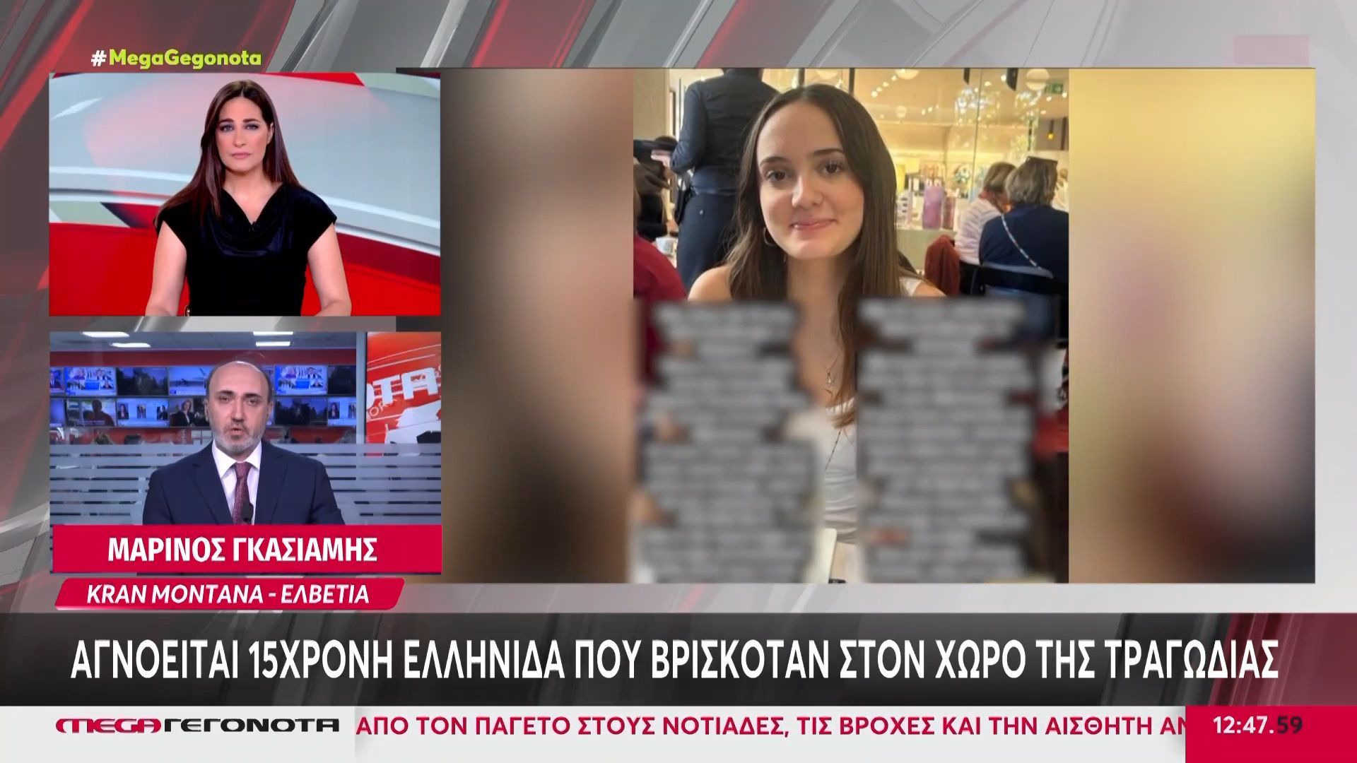 Αγνοείται μια 15χρονη Ελληνίδα που βρισκόταν σε μπαρ στο Κραν Μοντανά, στο πλαίσιο μιας πρόσφατης τραγωδίας στην Ελβετία. Η οικογένειά της εκφράζει την αγωνία της και ζητά τη βοήθεια των αρχών και του κοινού για την ανεύρεσή της.