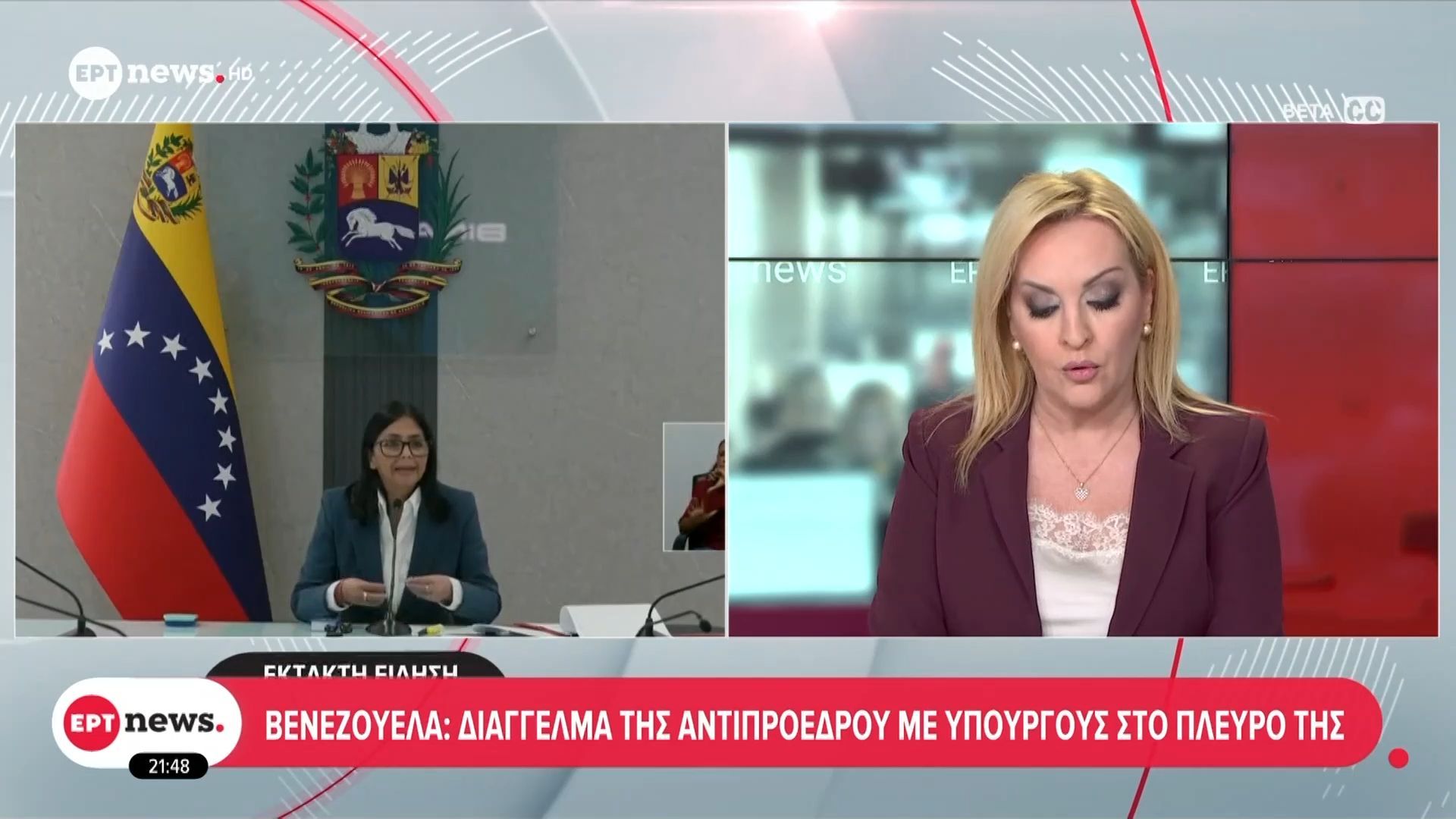 Η αντιπρόεδρος της Βενεζουέλας εμφανίστηκε δημόσια, συνοδευόμενη από υπουργούς της κυβέρνησής της, για να απευθυνθεί στον πληθυσμό. Κατά τη διάρκεια του διαγγέλματος, τόνισε την ανάγκη για ενότητα και συνεργασία εν μέσω των τρεχουσών προκλήσεων που αντιμετωπίζει η χώρα.