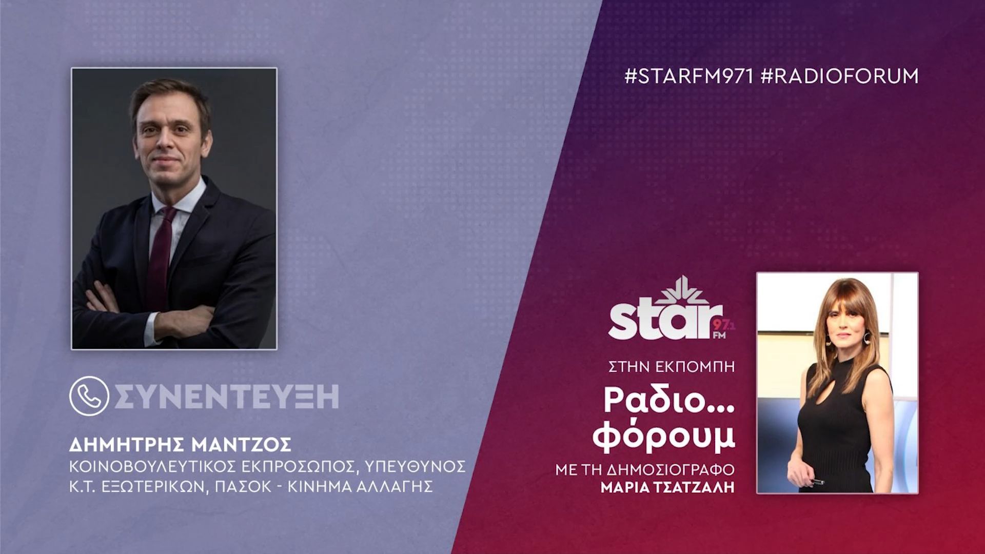 Ο Κοινοβουλευτικός Εκπρόσωπος, Υπεύθυνος Κοινοβουλευτικού Τομέα Εξωτερικών ΠΑΣΟΚ-ΚΙΝΑΛ Δημήτρης Μάντζος στον STAR FM
