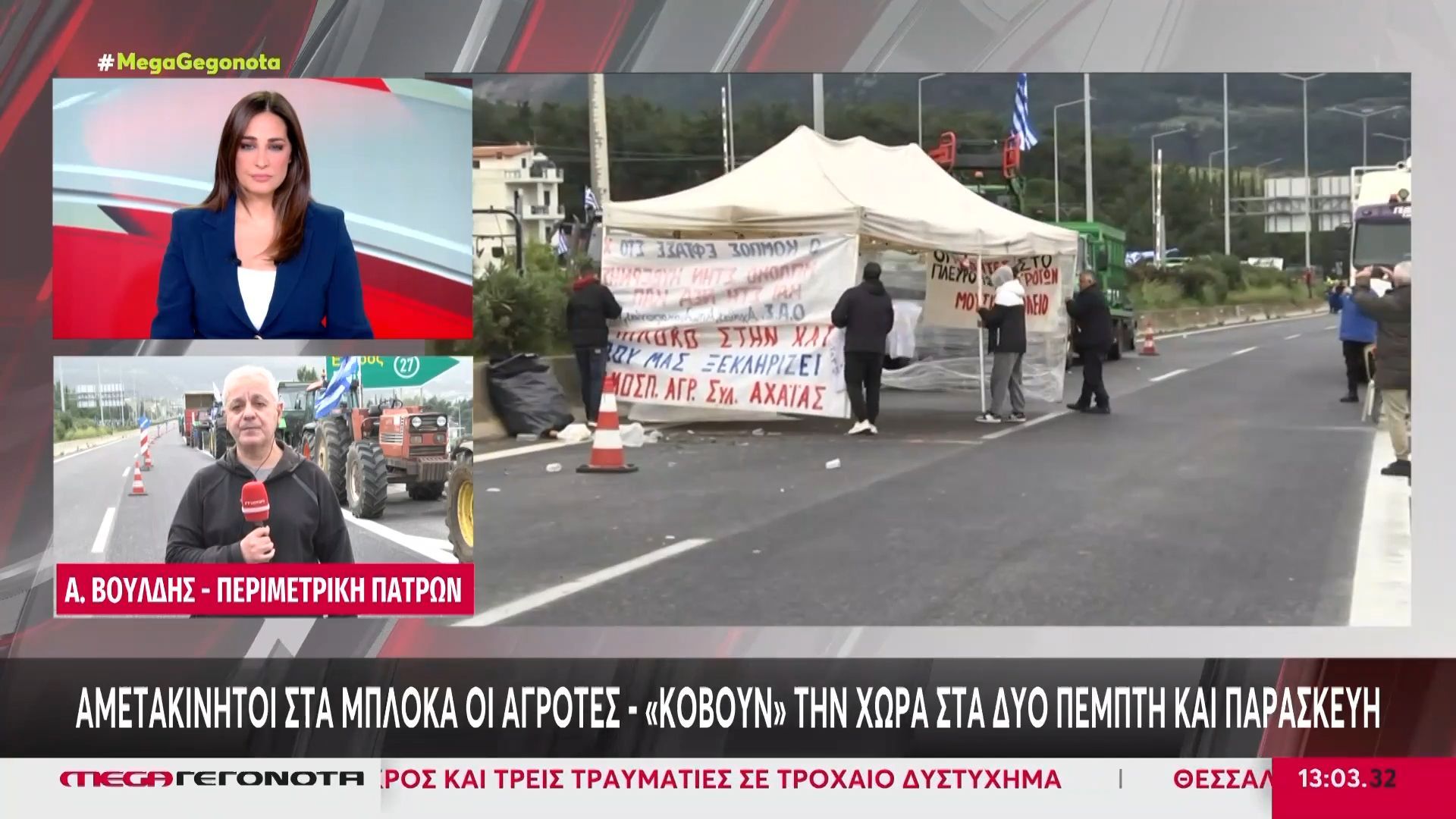 Η κατάσταση μεταξύ αγροτών και κυβέρνησης κλιμακώνεται, καθώς οι αγρότες συνεχίζουν τις κινητοποιήσεις τους με τρακτέρ στις Εθνικές οδούς. Η κυβέρνηση αναμένεται να ανακοινώσει αύριο τα μέτρα που θα λάβει για να αντιμετωπίσει τις αυξανόμενες πιέσεις και τα αιτήματα του αγροτικού τομέα.