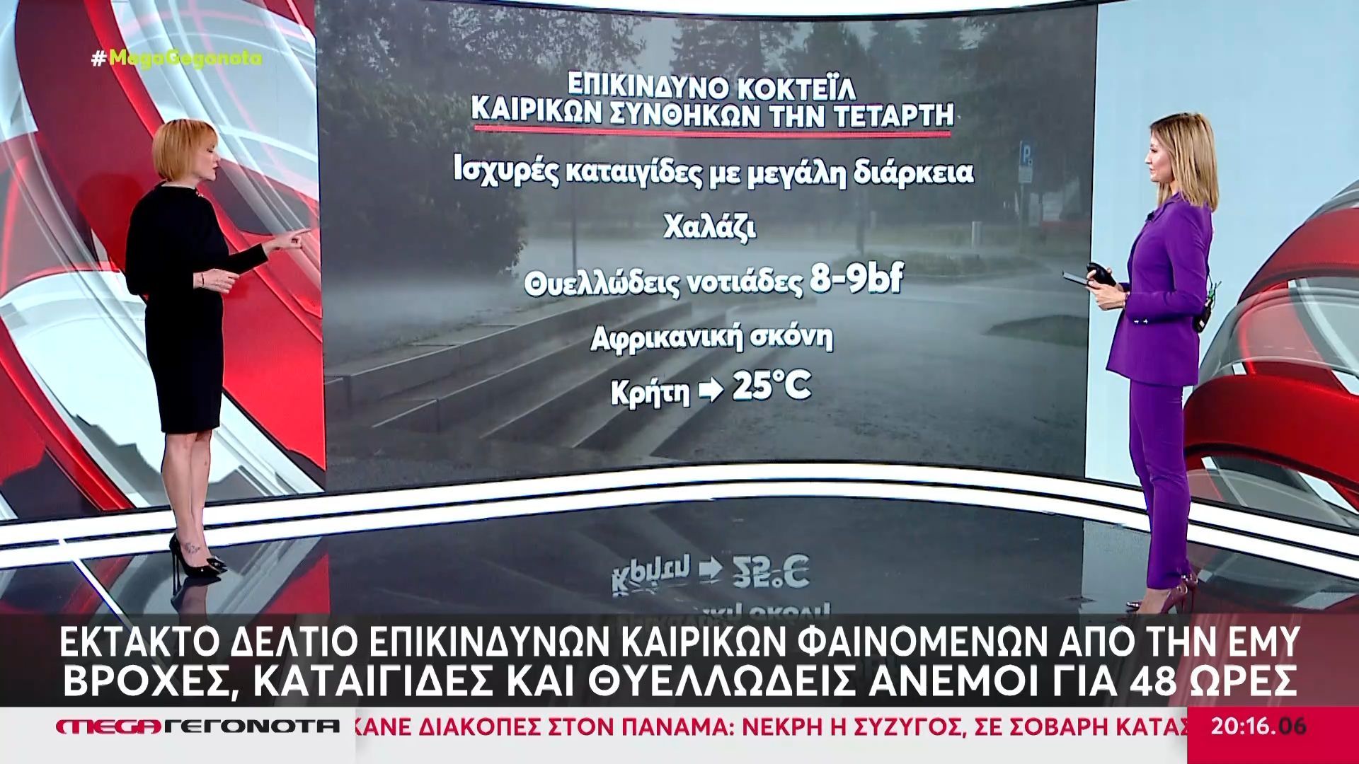 Έκτακτο δελτίο από την ΕΜΥ προειδοποιεί για σοβαρές καιρικές συνθήκες που θα πλήξουν τη χώρα τις επόμενες 48 ώρες. Αναμένονται ισχυρές βροχές και καταιγίδες σε πολλές περιοχές, με ιδιαίτερη προσοχή να δίνεται στα βόρεια και τα δυτικά.