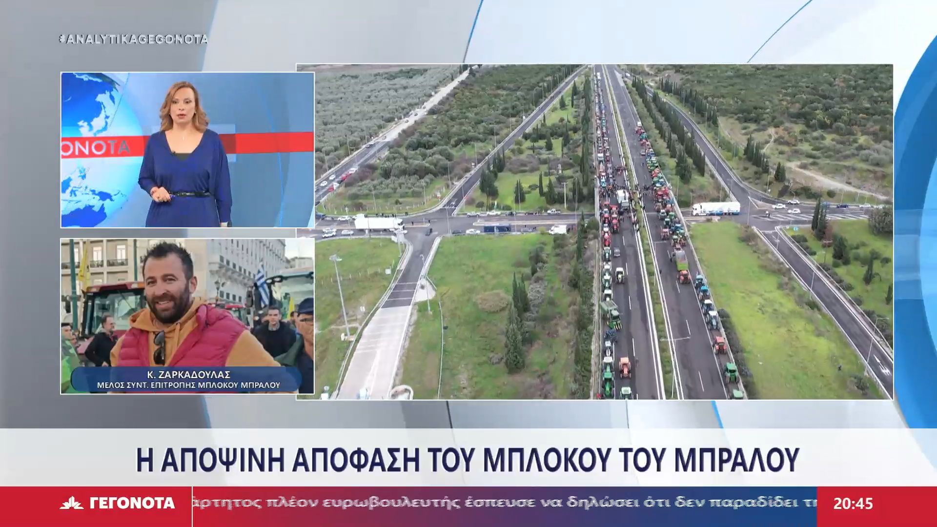 Οι αγρότες από το μπλόκο του Μπράλου προχωρούν σε 48ωρο αποκλεισμό του εθνικού οδικού δικτύου και των παραδρόμων, με στόχο την κλιμάκωση του αγώνα τους. Από το μεσημέρι της Πέμπτης, η κυκλοφορία στη χώρα έχει διακοπεί, προκαλώντας σοβαρές καθυστερήσεις και προβλήματα στις μετακινήσεις.