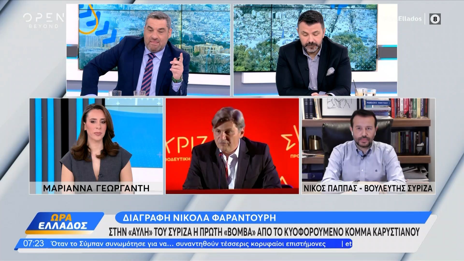 Ο Νίκος Παππάς εξέφρασε τις θέσεις του σχετικά με τη διαγραφή του Νίκου Φαραντούρη από την ευρωομάδα του ΣΥΡΙΖΑ, επισημαίνοντας την υποχρέωση του ευρωβουλευτή να παραδώσει την έδρα του. Η Κουμουνδούρου τονίζει ότι η παραμονή του Φαραντούρη στην ευρωομάδα είναι αδύνατη εφόσον δεν δεσμεύεται να εκπροσωπεί τους ψηφοφόρους του ΣΥΡΙΖΑ-ΠΣ.