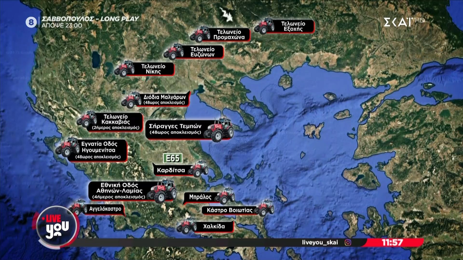 Ο Θεοδόσης Πάνου παρουσιάζει την κατάσταση των αγροτικών μπλόκων που έχουν στηθεί σε διάφορες περιοχές της χώρας. Οι αγρότες διαμαρτύρονται για τις αυξανόμενες τιμές των καλλιεργητικών εφοδίων και την έλλειψη στήριξης από την πολιτεία, ζητώντας άμεσες λύσεις.