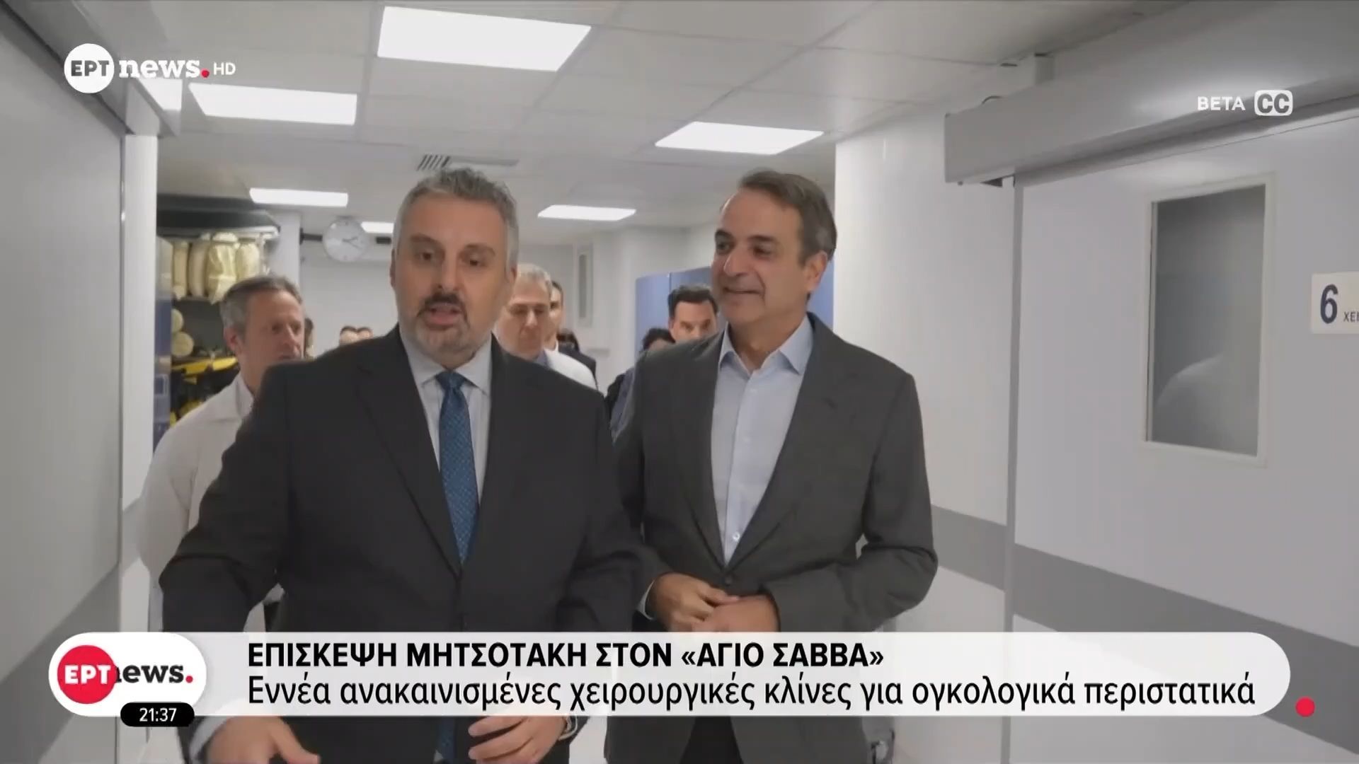 Ο Πρωθυπουργός Κυριάκος Μητσοτάκης επισκέφθηκε το νοσοκομείο «Άγιος Σάββας», όπου ανακοινώθηκε η αναβάθμιση του ογκολογικού τμήματος με εννέα ανακαινισμένες χειρουργικές κλίνες. Αυτή η πρωτοβουλία στοχεύει στη βελτίωση των παρεχόμενων υπηρεσιών υγειονομικής περίθαλψης για τους ασθενείς με καρκίνο.