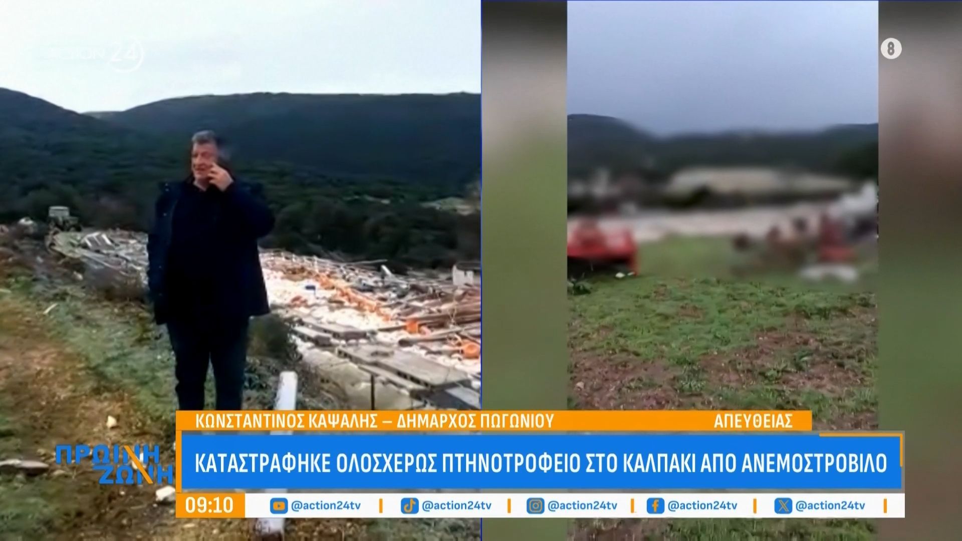 Σφοδρός ανεμοστρόβιλος έπληξε τον Δήμο Πωγωνίου, προκαλώντας την ολοσχερή καταστροφή ενός πτηνοτροφείου. Οι ζημιές είναι ανυπολόγιστες, ενώ οι τοπικές αρχές βρίσκονται σε κατάσταση έκτακτης ανάγκης προκειμένου να εκτιμήσουν την κατάσταση και να παρέχουν βοήθεια στους επηρεαζόμενους.