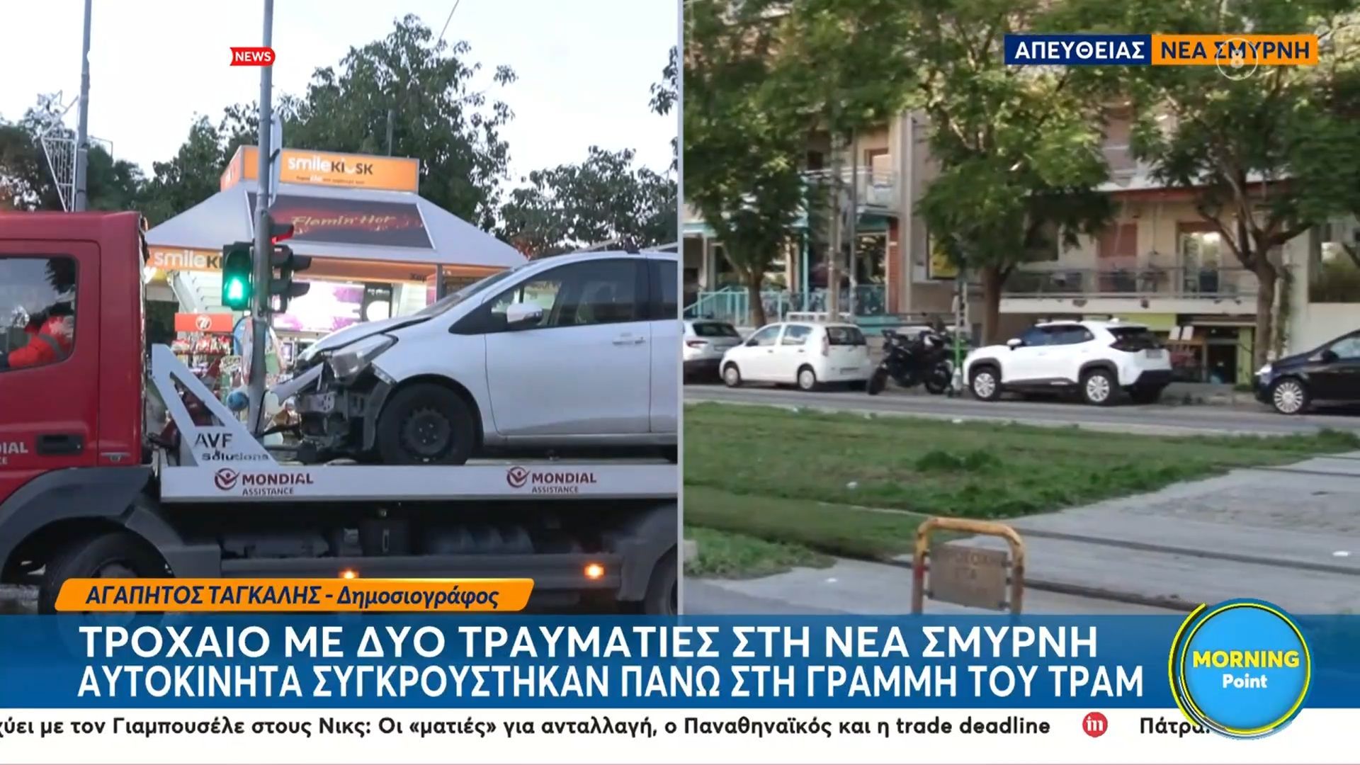 Τροχαίο ατύχημα σημειώθηκε στη Νέα Σμύρνη, όταν δύο αυτοκίνητα συγκρούστηκαν πάνω στις γραμμές του τραμ. Από τη σύγκρουση τραυματίστηκαν δύο άτομα, τα οποία μεταφέρθηκαν άμεσα στο νοσοκομείο για ιατρική φροντίδα.