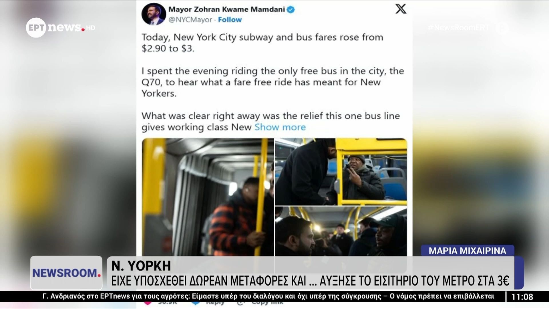 Αύξηση του εισιτηρίου στα 3 δολάρια στο μετρό της Νέας Υόρκης προκαλεί αντιδράσεις, αψηφώντας τις υποσχέσεις για δωρεάν μεταφορές και οικονομική προσιτότητα