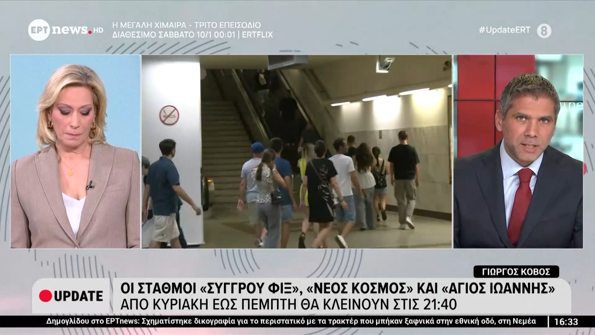Από την ερχόμενη Κυριακή, οι σταθμοί του μετρό «Συγγρού Φιξ», «Νέος Κόσμος» και «Άγιος Ιωάννης» θα κλείνουν νωρίτερα, στις 21:40, κατά τις εργάσιμες ημέρες. Η απόφαση αυτή ελήφθη στο πλαίσιο της προσπάθειας για καλύτερη διαχείριση των πόρων και της ασφάλειας των επιβατών.