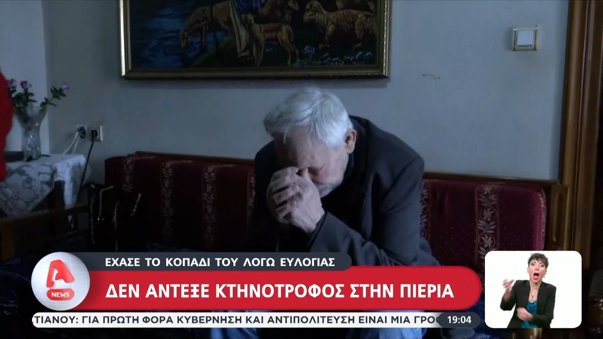 Κτηνοτρόφος από την Πιερία εκφράζει την αγωνία και τη θλίψη του μετά την απώλεια του κοπαδιού του λόγω της ευλογίας. Η κατάσταση αυτή έχει προκαλέσει σοβαρά προβλήματα στην επιβίωσή του, καθώς η κτηνοτροφία αποτελεί την κύρια πηγή εισοδήματός του.