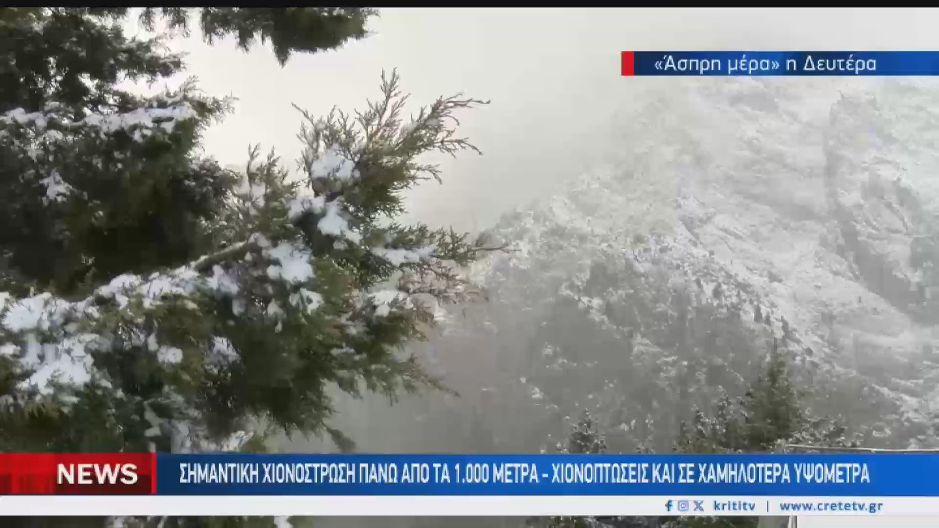 Πρώτη χιονόπτωση στην Κρήτη με χιόνια στα ορεινά τη Δευτέρα και προειδοποιήσεις για πιθανές δυσκολίες στις μετακινήσεις
