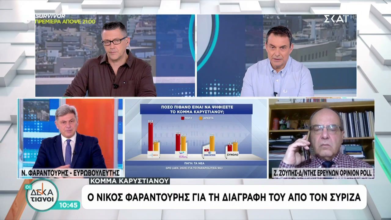 Ο Νίκος Φαραντούρης μιλά για την απόφαση διαγραφής του από τον ΣΥΡΙΖΑ, αναλύοντας τους λόγους που τον οδήγησαν σε αυτή την εξέλιξη. Επισημαίνει τις πολιτικές διαφωνίες και τις προκλήσεις που αντιμετώπισε, καθώς και την επιθυμία του για μια πιο ελεύθερη έκφραση των απόψεών του.