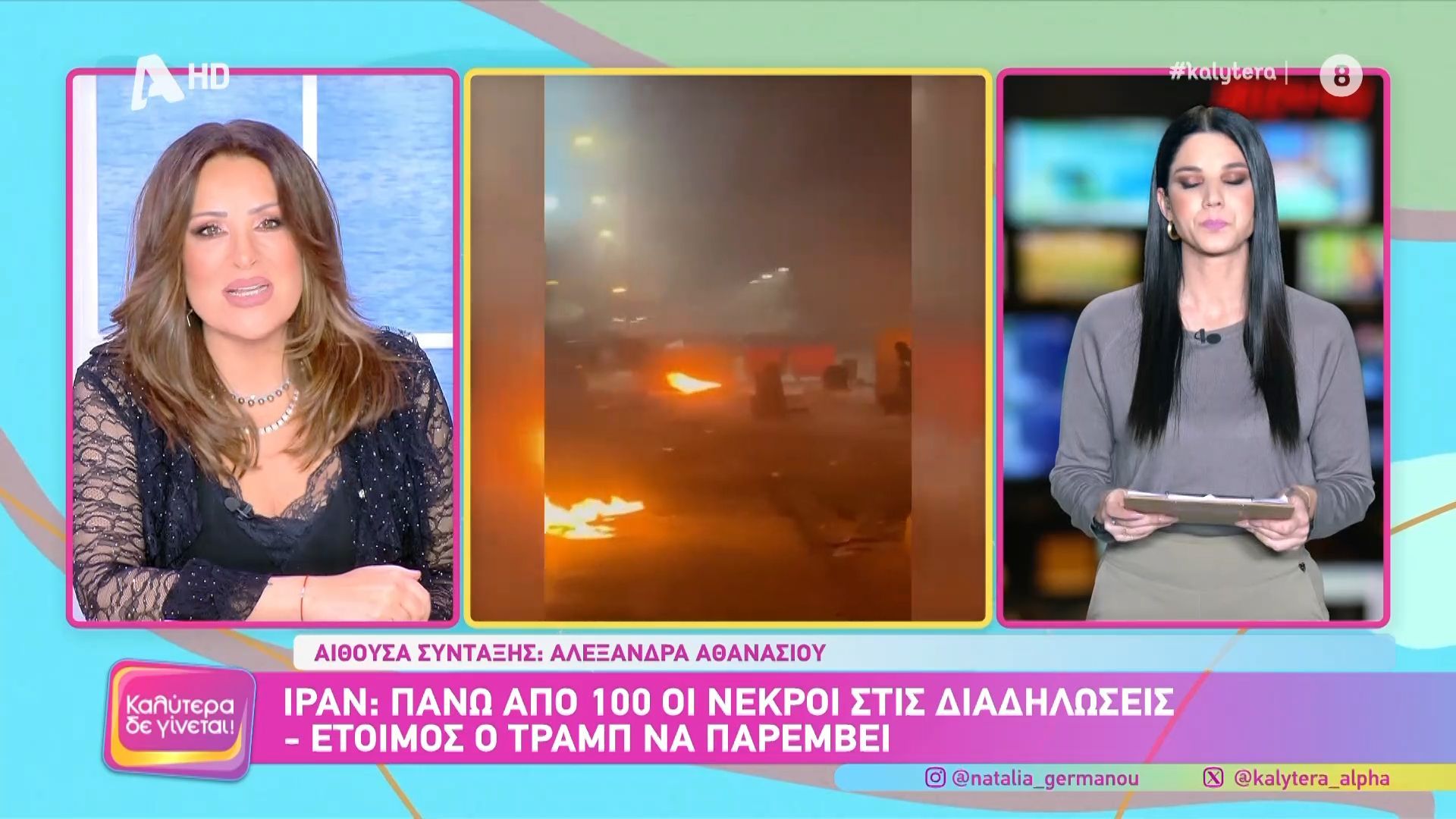 Η Ναταλία Γερμανού αναλύει την πρόσφατη ανακοίνωση του πρώην προέδρου Τραμπ σχετικά με την παρέμβαση των Ηνωμένων Πολιτειών στο Ιράν, σε μια περίοδο αυξανόμενων αντικυβερνητικών διαδηλώσεων στη χώρα. Η Γερμανού επισημαίνει ότι η απόφαση αυτή ήταν αναμενόμενη, δεδομένων των εξελίξεων και της διεθνούς πολιτικής δυναμικής.