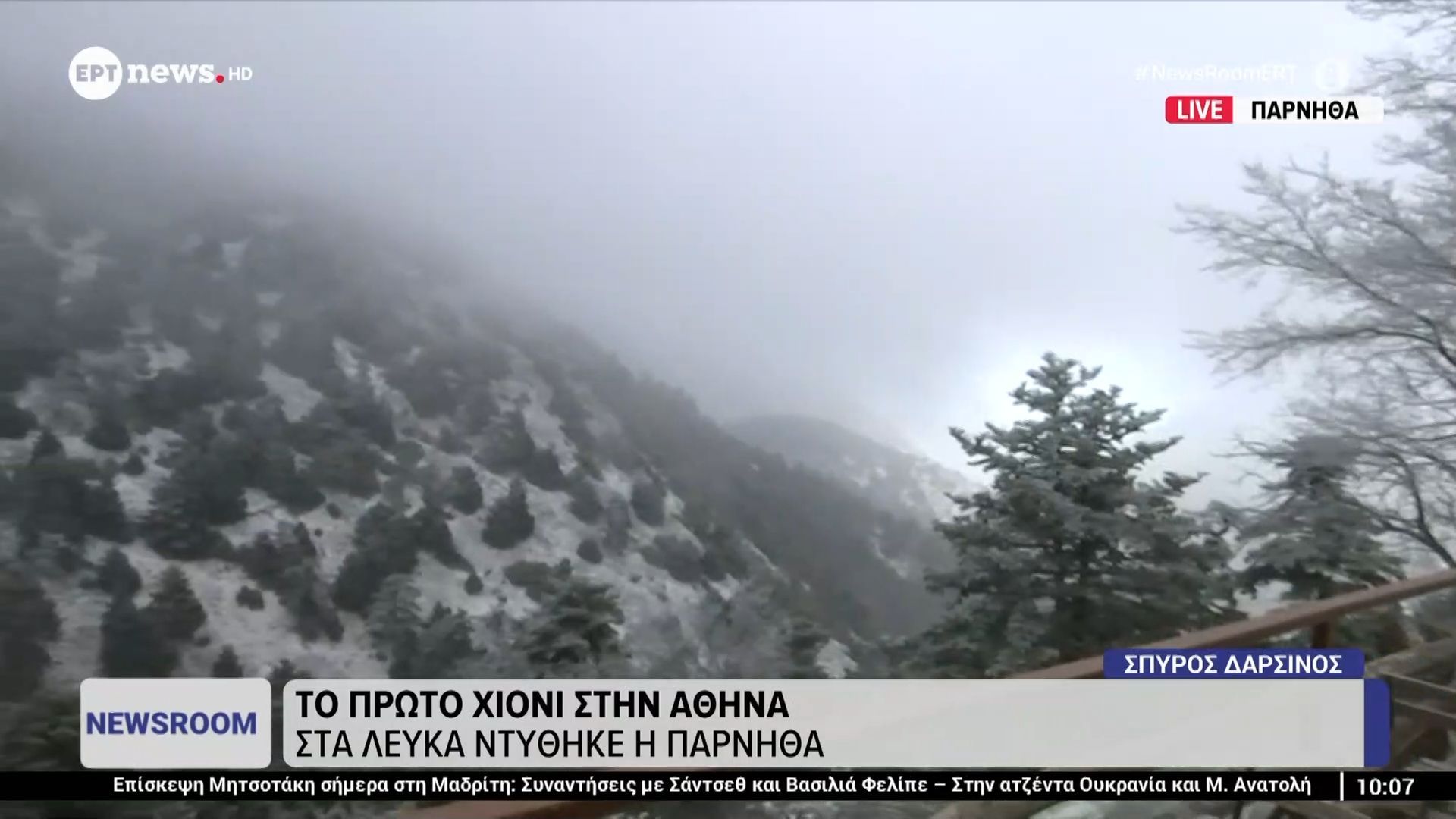 Το πρώτο χιόνι σκέπασε την Πάρνηθα με λευκό μανδύα, προσφέροντας μοναδική χειμερινή εικόνα και προειδοποιήσεις για προσοχή στις μετακινήσεις