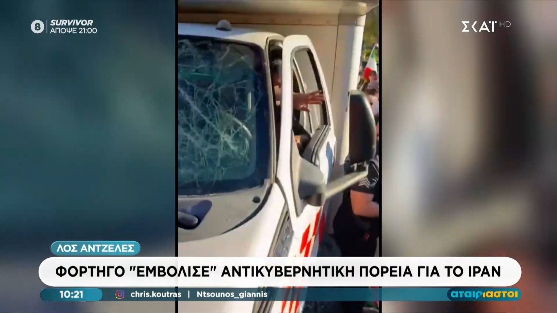 Φορτηγό παρέσυρε διαδηλωτές κατά τη διάρκεια μιας αντικυβερνητικής πορείας στο Ιράν, προκαλώντας σοβαρές αναταραχές. Οι εικόνες δείχνουν ένταση και πανικό, καθώς οι διαδηλωτές προσπαθούν να απομακρυνθούν από το σημείο του συμβάντος.