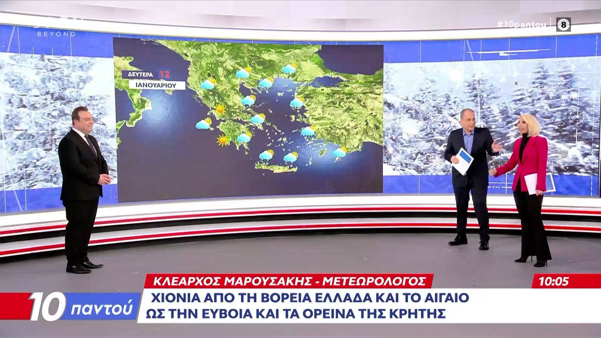 Στα ορεινά της χώρας, οι θερμοκρασίες έχουν υποχωρήσει κάτω από το μηδέν, με αρκετές περιοχές να καταγράφουν ακόμη και -10 βαθμούς Κελσίου. Χιόνια καλύπτουν τη βόρεια Ελλάδα, το Αιγαίο, καθώς και περιοχές της Εύβοιας και των ορεινών της Κρήτης, δημιουργώντας εντυπωσιακά τοπία αλλά και δυσκολίες στις μετακινήσεις.