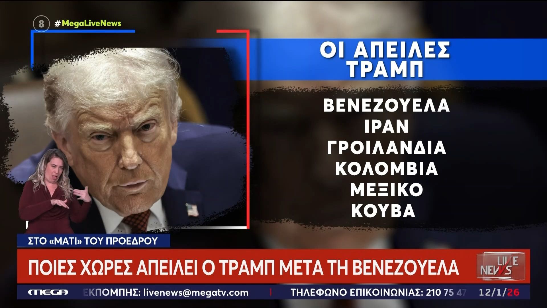 Η αμερικανική κυβέρνηση προειδοποιεί για πιθανές κυρώσεις εναντίον έξι χωρών, με επίκεντρο τη Βενεζουέλα. Οι εντάσεις αυξάνονται καθώς ο Πρόεδρος Τραμπ δηλώνει ότι οι ενέργειες αυτές αποσκοπούν στη στήριξη της δημοκρατίας και στην αποκατάσταση της τάξης στην περιοχή.