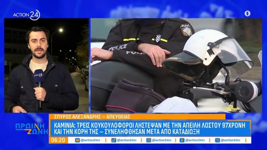Καμίνια: Τρεις κουκουλοφόροι λήστεψαν με την απειλή λοστού μια 97χρονη και την κόρη της – Συνελήφθησαν