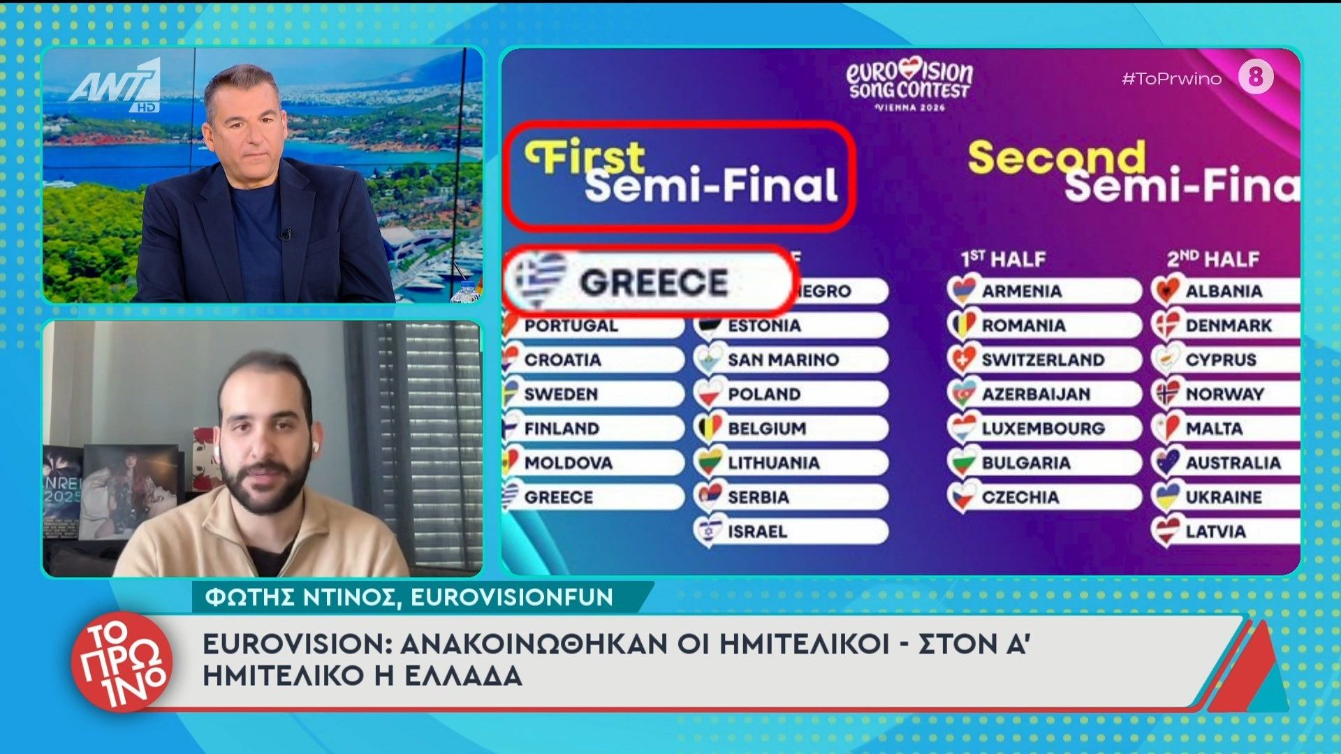 Ανακοινώθηκαν οι ημιτελικοί του διαγωνισμού και η Ελλάδα θα συμμετάσχει στον πρώτο ημιτελικό. Ο Φώτης Ντίνος, συντάκτης του Eurovisionfun, μοιράζεται τις λεπτομέρειες για την υποψηφιότητα της χώρας και τις προσδοκίες του για τη φετινή διοργάνωση.