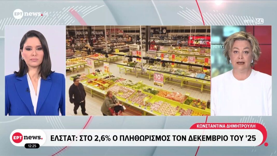 ΕΛΣΤΑΤ: Στο 2,6% ο πληθωρισμός τον Δεκέμβριο του ’25