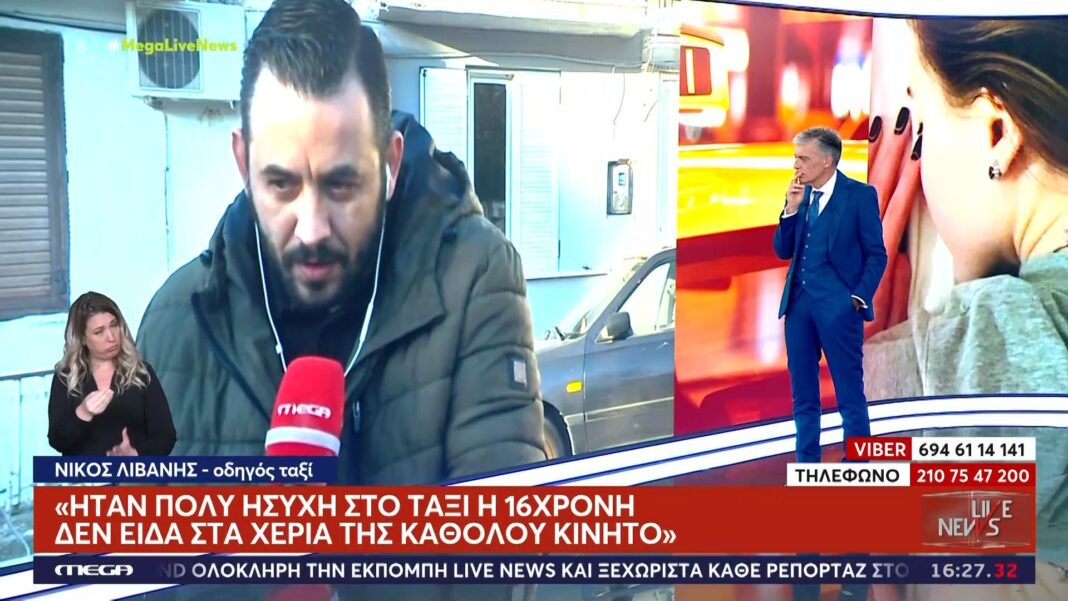 Ο οδηγός ταξί που μετέφερε τη 16χρονη Λόρα στην Αθήνα μίλησε για την εμπειρία του, τονίζοντας ότι δεν είδε τηλέφωνο στα χέρια της κατά τη διάρκεια της διαδρομής. Η Λόρα του παρέδωσε 320€ για την κούρσα, χωρίς να δείχνει σημάδια ανησυχίας ή να ζητάει βοήθεια.