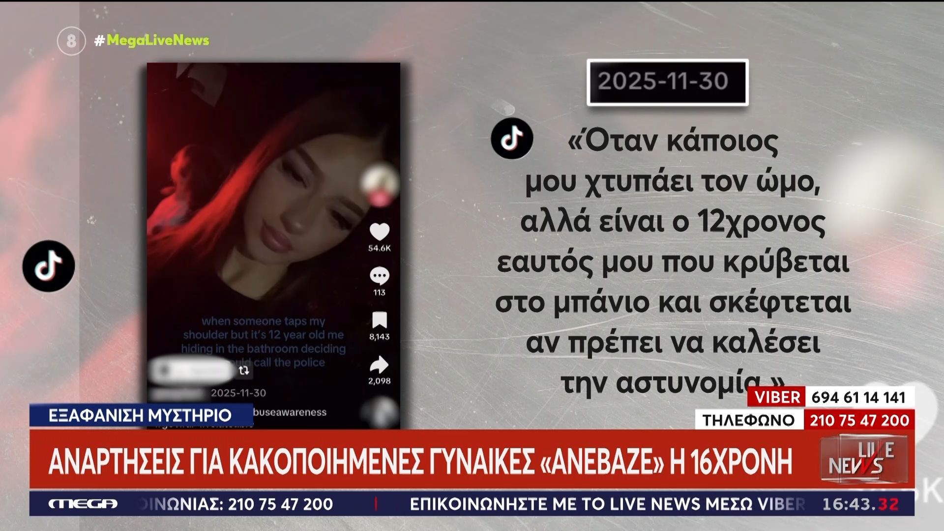 Μια 16χρονη κοπέλα έχει γίνει θέμα συζήτησης λόγω των αναρτήσεών της στα μέσα κοινωνικής δικτύωσης, όπου εξέφραζε την υποστήριξή της για κακοποιημένες γυναίκες. Η Λόρα, που εξαφανίστηκε υπό μυστηριώδεις συνθήκες, είχε δημιουργήσει μια διαδικτυακή κοινότητα που ευαισθητοποιεί για την κακοποίηση και τα δικαιώματα των γυναικών.