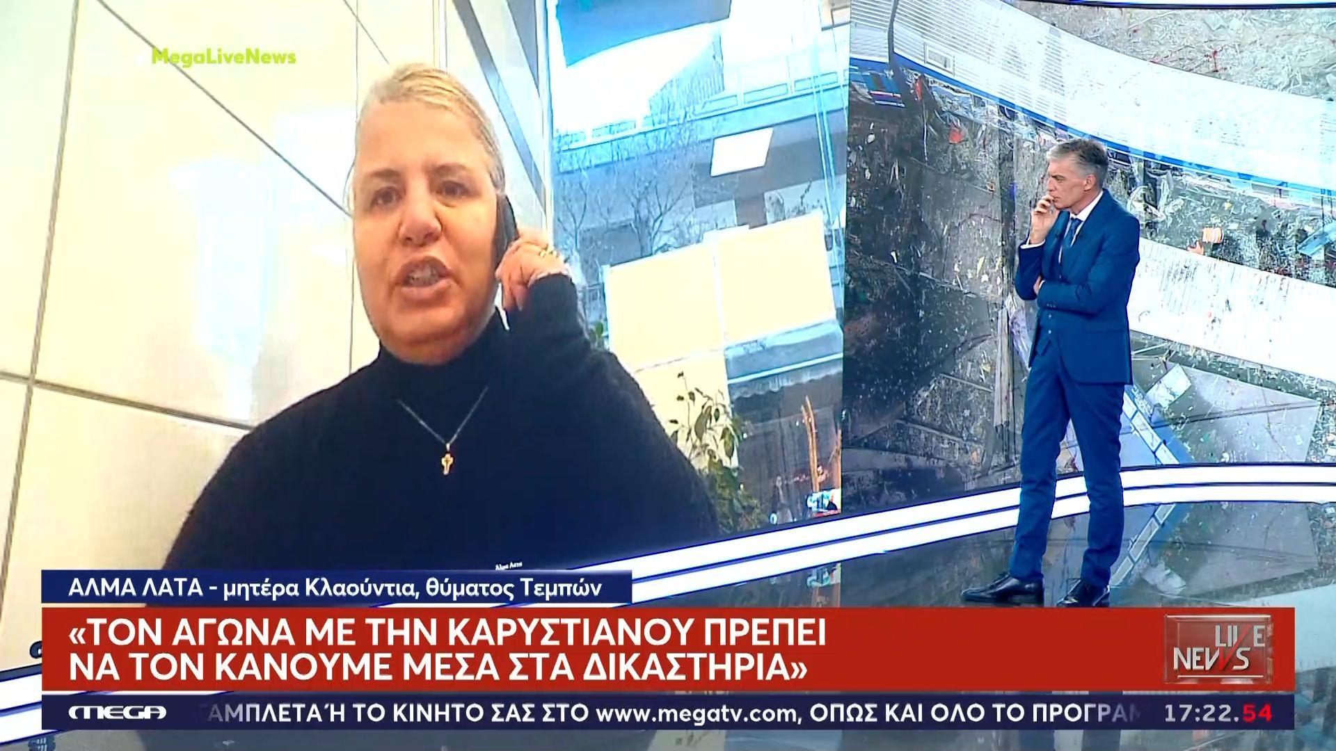 Η μητέρα της Κλαούντια, Άλμα Λάτα, εκφράζει την αγανάκτησή της για την απουσία δικαιοσύνης τρία χρόνια μετά την τραγωδία στα Τέμπη. Αφού αναφέρεται στις υποσχέσεις που δεν έχουν τηρηθεί, τονίζει ότι κανείς δεν έχει λογοδοτήσει και η κατάσταση παραμένει αμετάβλητη.