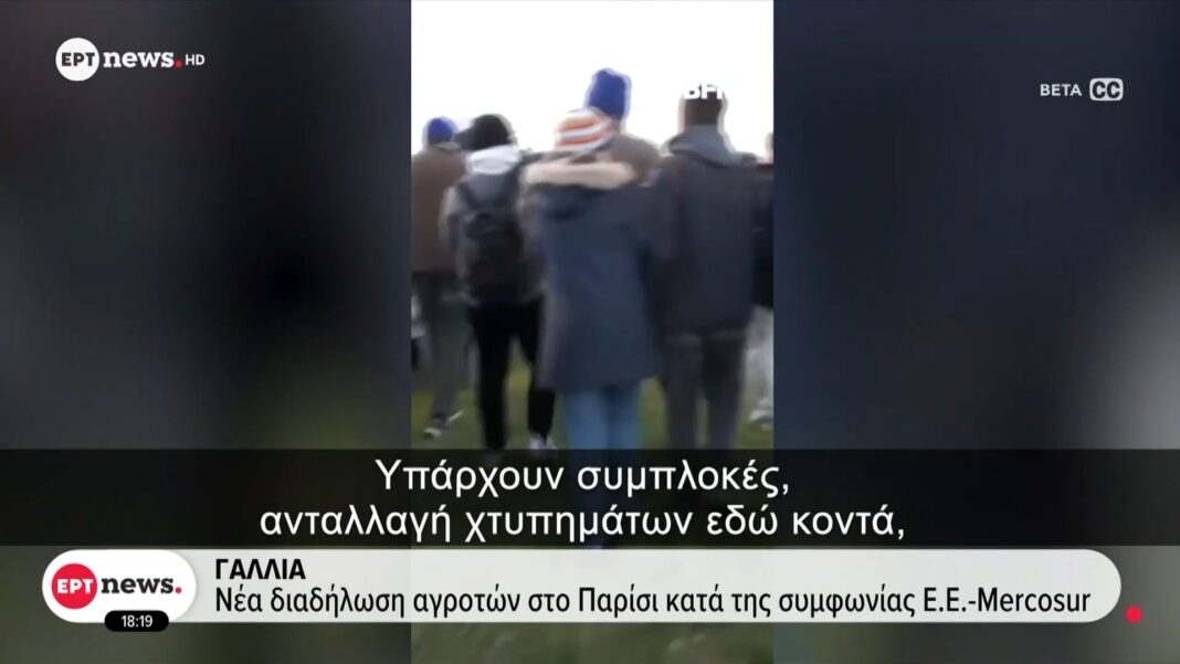 Εκατοντάδες αγρότες συγκεντρώθηκαν στα Ηλύσια Πεδία, φέρνοντας μαζί τους τρακτέρ και διαμαρτυρόμενοι κατά της συμφωνίας μεταξύ Ε.Ε. και Mercosur. Οι συμμετέχοντες εκφράζουν την ανησυχία τους για τις επιπτώσεις της συμφωνίας στην ευρωπαϊκή γεωργία και την τοπική παραγωγή.