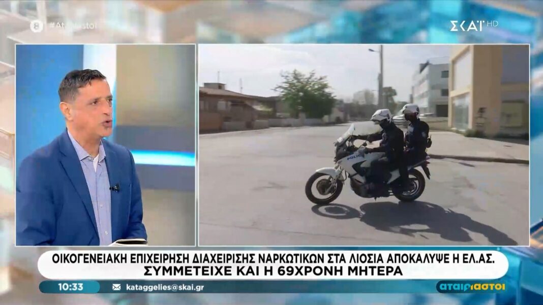 Η Ελληνική Αστυνομία αποκάλυψε μια οικογενειακή επιχείρηση που διαχειριζόταν ναρκωτικά στα Λιόσια, με τα μέλη της να φέρουν ευθύνες για την προμήθεια και διακίνηση ναρκωτικών ουσιών. Ανάμεσα στους συλληφθέντες είναι και η 69χρονη μητέρα, η οποία φέρεται να συμμετείχε ενεργά στις παράνομες δραστηριότητες της οικογένειας.