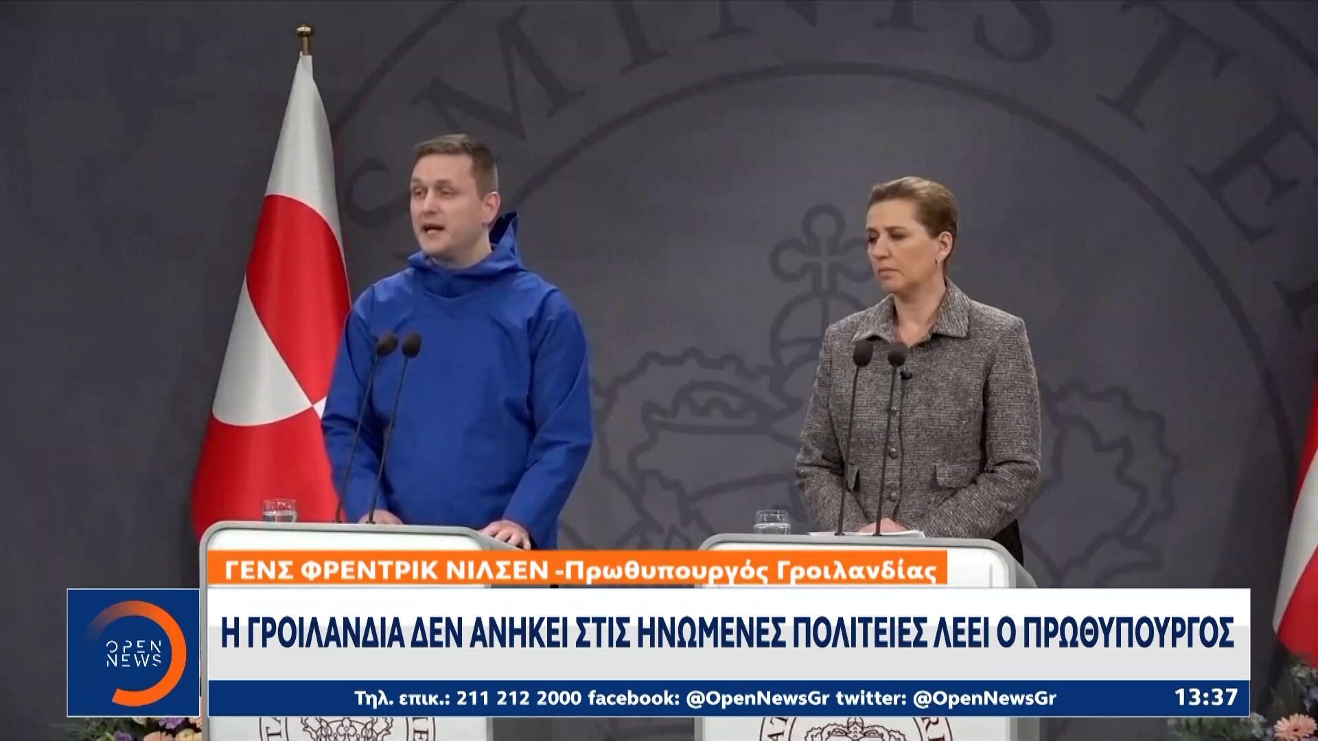 Κρίσιμη συνάντηση πραγματοποιείται στον Λευκό Οίκο, καθώς οι υπουργοί Εξωτερικών Δανίας και Γροιλανδίας συναντούν τον Αμερικανό αντιπρόεδρο. Σκοπός των συνομιλιών είναι η αποκλιμάκωση των εντάσεων που προκλήθηκαν από τις απειλές του πρώην προεδρικού υποψηφίου, Ντόναλντ Τραμπ, σχετικά με την Γροιλανδία.