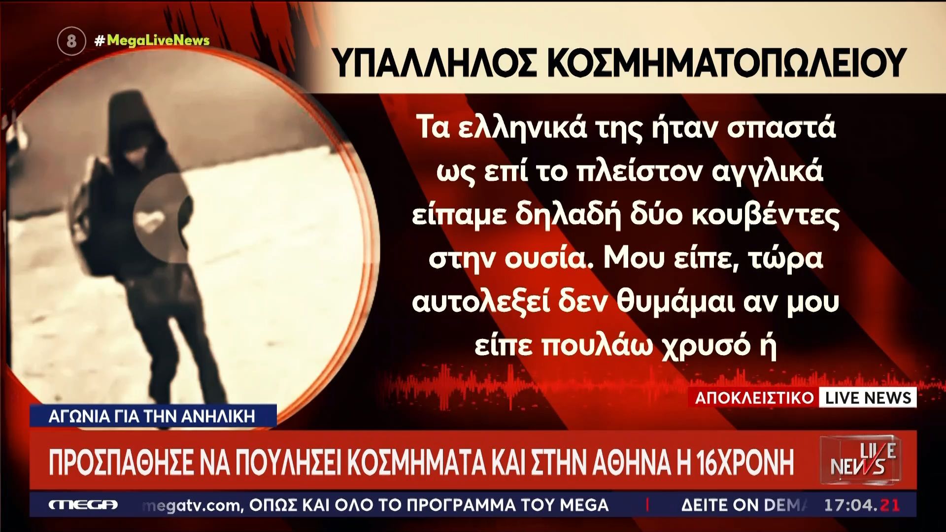 Η εξαφάνιση μιας 16χρονης έχει προκαλέσει ανησυχία στην κοινωνία, καθώς οι αρχές συνεχίζουν τις έρευνές τους. Σύμφωνα με πληροφορίες, η νεαρή κοπέλα επιχείρησε να πουλήσει κοσμήματα σε κοσμηματοπωλείο της Αθήνας, γεγονός που εγείρει ερωτήματα σχετικά με την προέλευση των αντικειμένων.