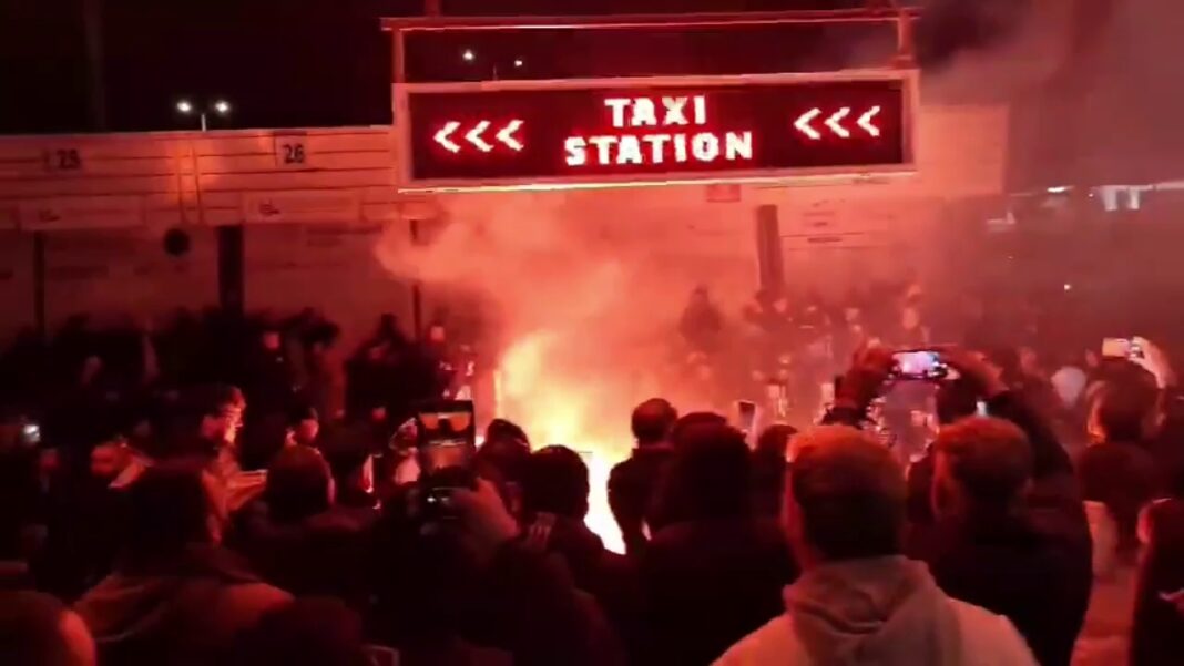 Μαζική υποδοχή του ΟΦΗ στο αεροδρόμιο Ηρακλείου μετά την πρόκριση στα ημιτελικά του Κυπέλλου, με τους οπαδούς να πανηγυρίζουν