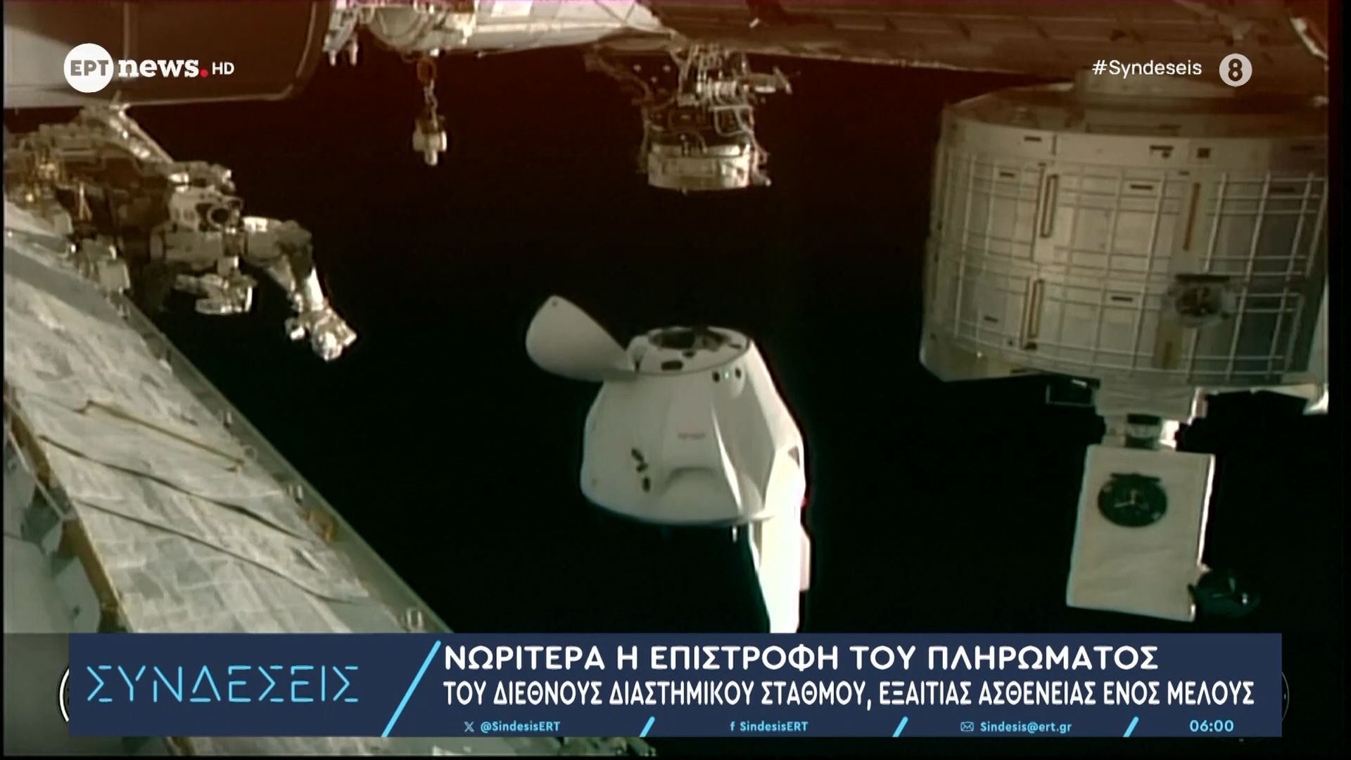 Η επιστροφή του πληρώματος του Διεθνούς Διαστημικού Σταθμού πραγματοποιήθηκε νωρίτερα από τον προγραμματισμένο λόγω ασθένειας ενός μέλους της αποστολής. Οι αρμόδιες αρχές έλαβαν άμεσες αποφάσεις για την ασφάλεια των αστροναυτών, διασφαλίζοντας την υγεία τους σε προτεραιότητα.