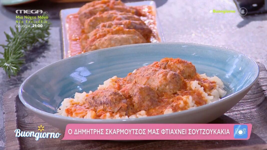 Ο Δημήτρης Σκαρμούτσος μας παρουσιάζει μια παραδοσιακή συνταγή για νόστιμα σουτζουκάκια, χρησιμοποιώντας φρέσκα υλικά και ειδικές τεχνικές μαγειρικής. Ο βασικός συνδυασμός μοσχαρίσιου κιμά με ψίχα ψωμιού, αρωματισμένος με κύμινο και σκόρδο, υπόσχεται μια πλούσια γεύση που θα εντυπωσιάσει.