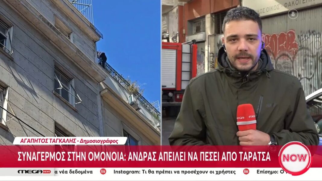 Στον 7ο όροφο του κτιρίου της πολεοδομίας στην Ομόνοια, ένας άνδρας έχει βγει στην ταράτσα και απειλεί να πέσει στο κενό. Η αστυνομία και οι διασώστες βρίσκονται στο σημείο, προσπαθώντας να τον πείσουν να επιστρέψει στο εσωτερικό του κτιρίου και να αποφευχθεί μια τραγωδία.