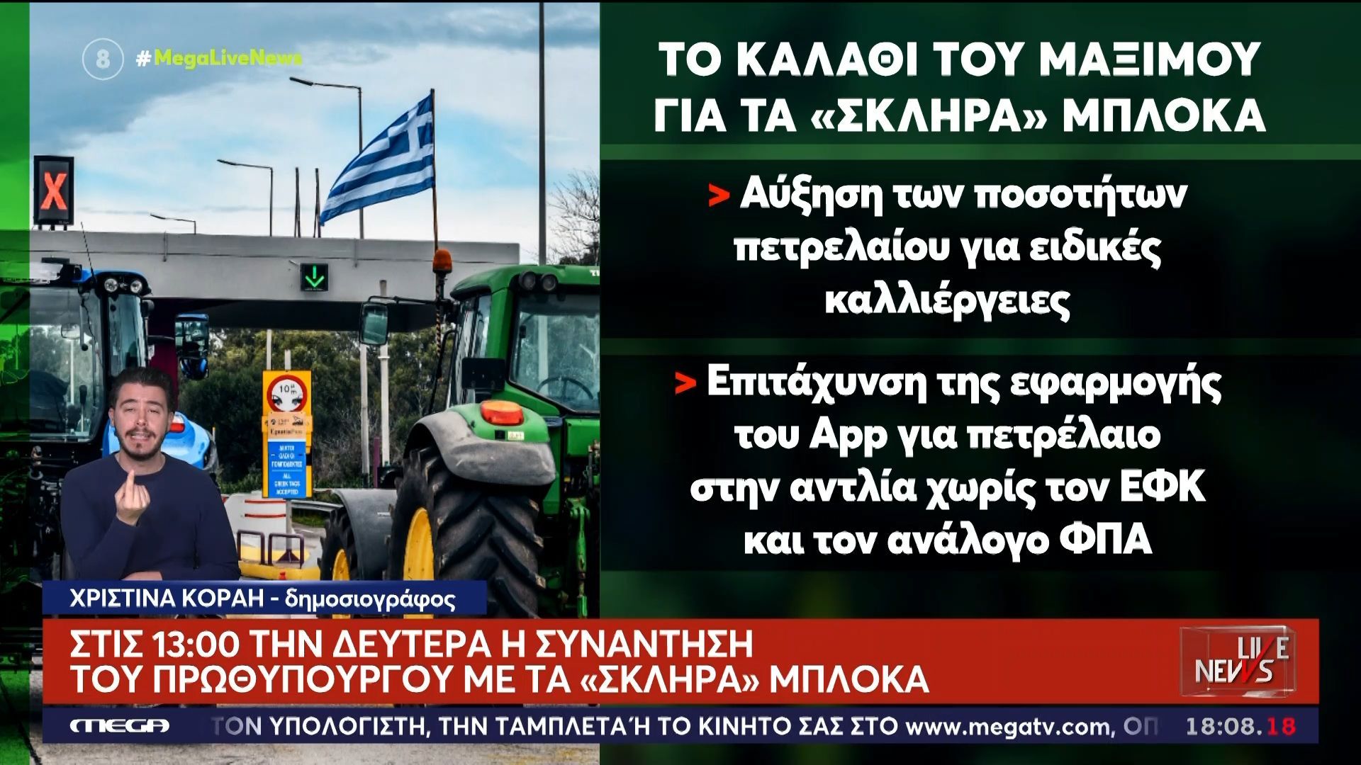 Κυβερνητική συνάντηση με εκπροσώπους αγροτικών μπλόκων για επίλυση οικονομικών ζητημάτων και αποκατάσταση της κοινωνικής συνοχής