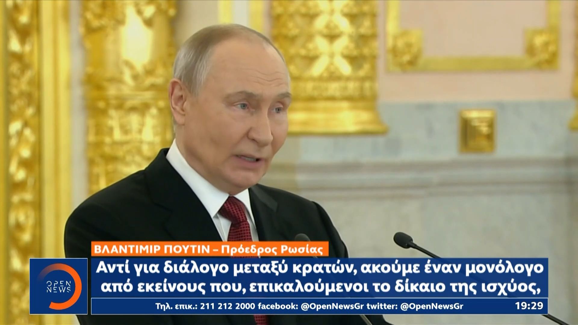 Ο Πούτιν επιδιώκει μακρόχρονη ειρήνη στην Ουκρανία, κατηγορώντας τη Δύση για την κλιμάκωση της σύγκρουσης και την αθέτηση των συμφωνιών