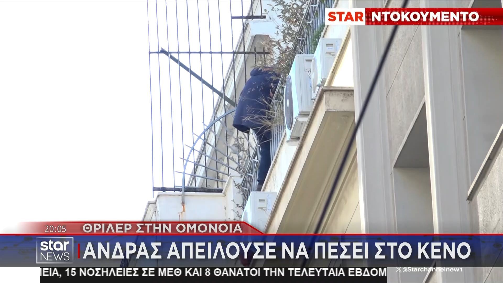 Συναγερμός σήμανε στην Ομόνοια όταν ένας άνδρας απείλησε να πέσει από μπαλκόνι πολυκατοικίας. Οι πυροσβεστικές δυνάμεις και οι διασώστες έφτασαν αμέσως στο σημείο, επιχειρώντας να τον πείσουν να απομακρυνθεί από το χείλος του μπαλκονιού.