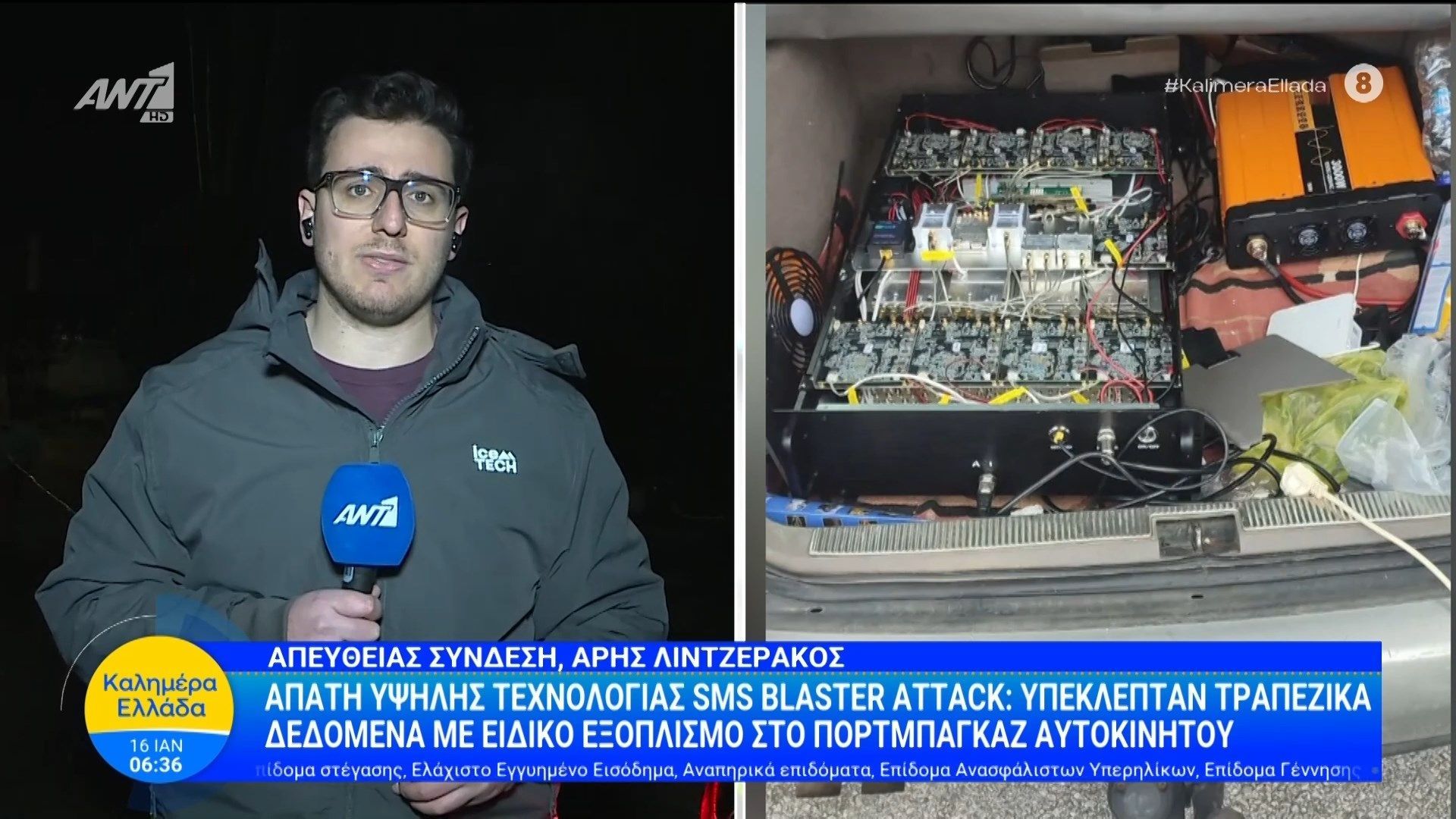 Μια νέα τεχνολογία απάτης έχει αναδυθεί, με εγκληματίες να χρησιμοποιούν ειδικό εξοπλισμό για να υποκλέπτουν τραπεζικά δεδομένα. Ο εξοπλισμός αυτός βρίσκεται στο πορτμπαγκάζ αυτοκινήτου και επιτρέπει την αποστολή μαζικών μηνυμάτων SMS σε ανυποψίαστους πολίτες, προσπαθώντας να τους εξαπατήσουν.